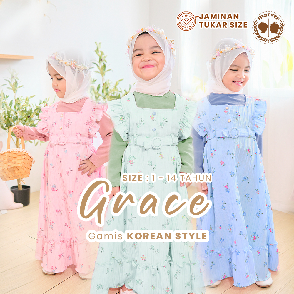 MARVES GAMIS ANAK PEREMPUAN KOREAN STYLE FREE KERUDUNG USIA 1 HINGGA 14 TAHUN MODEL GRACE