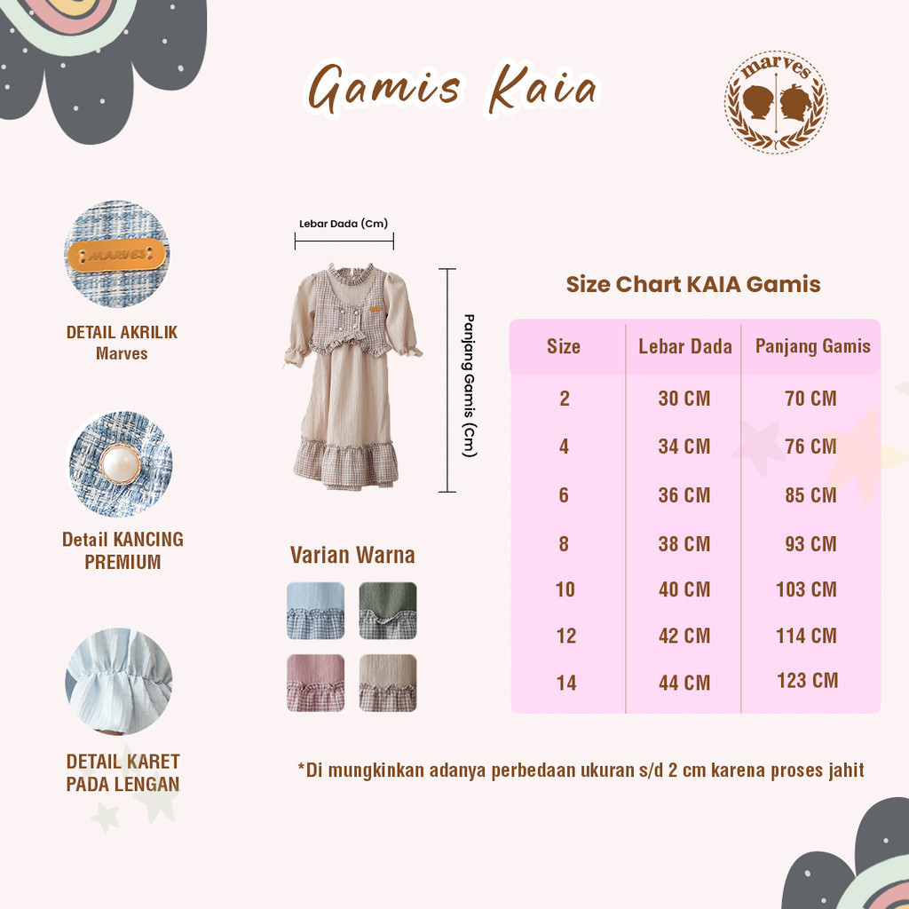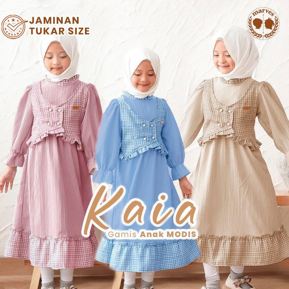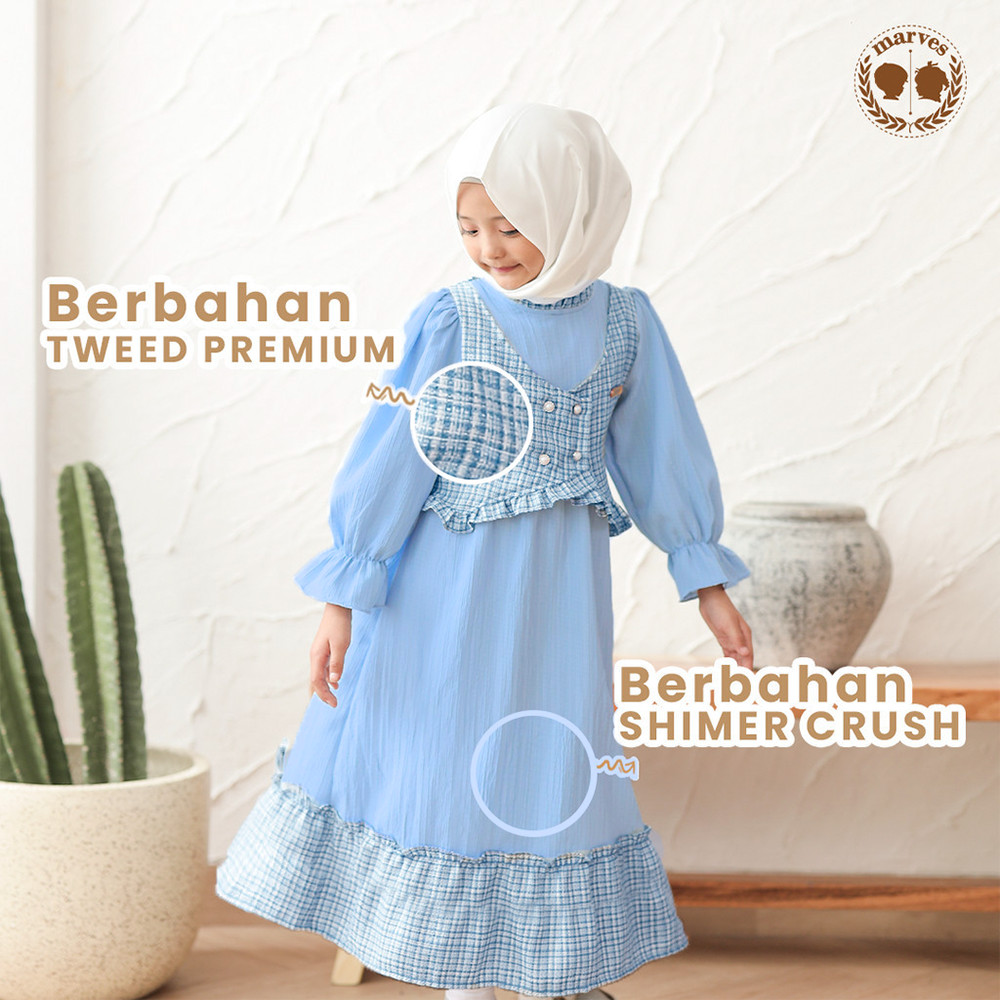 MARVES GAMIS BAJU MUSLIM ANAK PEREMPUAN FREE KERUDUNG USIA 2 HINGGA 14 TAHUN MODEL KAIA