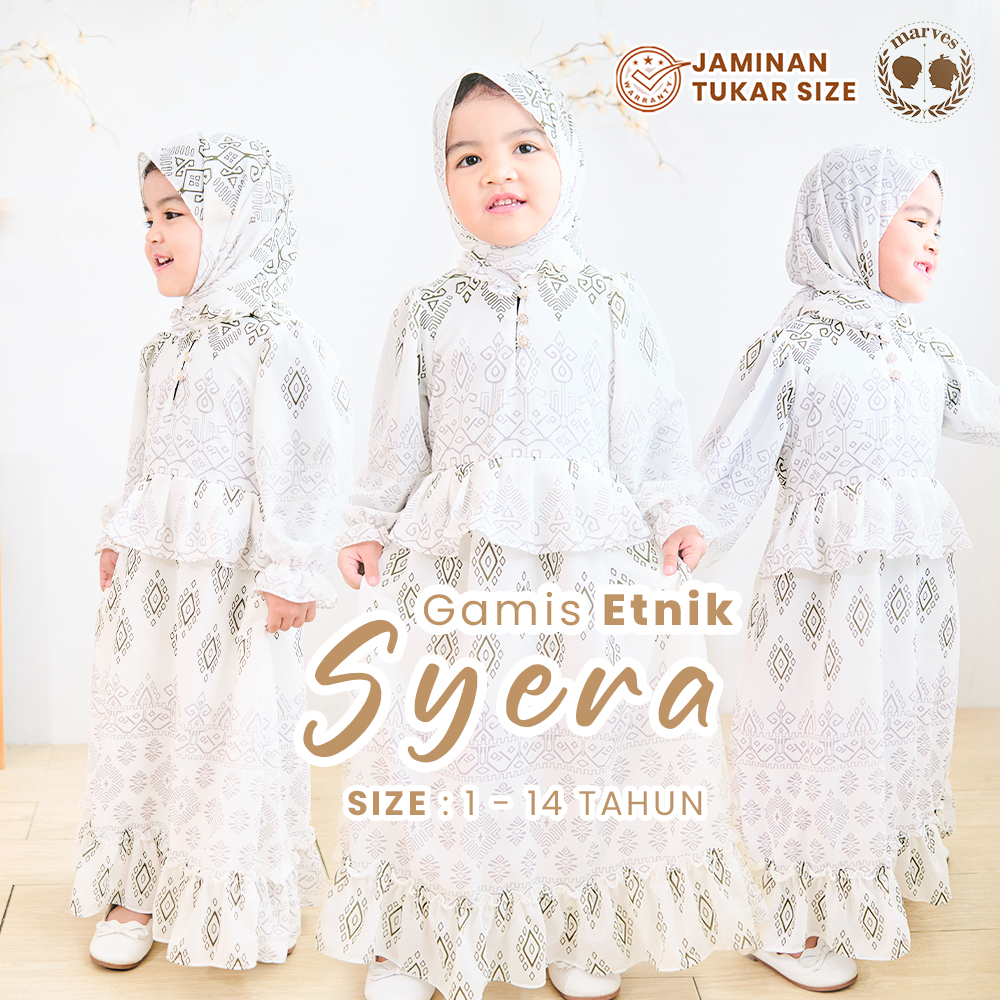MARVES GAMIS ANAK ETNIK SYARI FREE KRUDUNG BAHAN CRINKLE USIA 1 HINGGA 14 TAHUN MODEL SYERA
