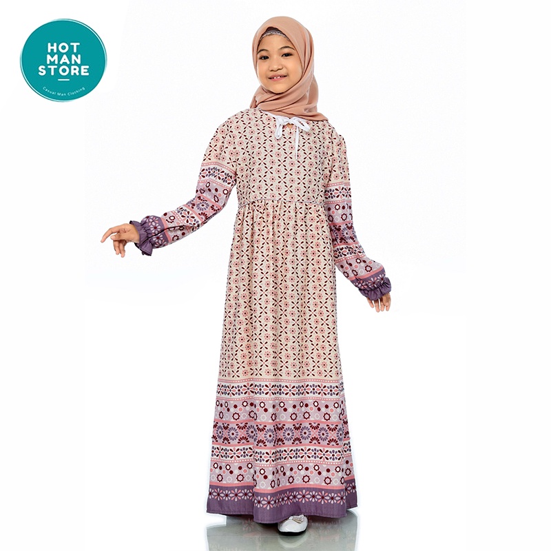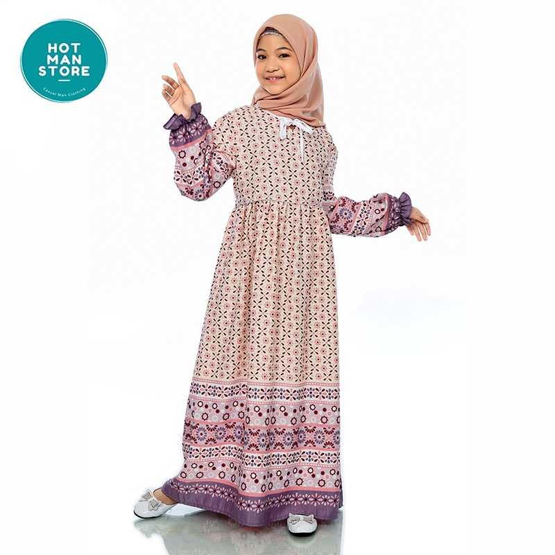GAMIS ANAK PEREMPUAN MOTIF BATIK BAHAN MAXMARA PRINTING PREMIUM (PROMO FREE HIJAB)