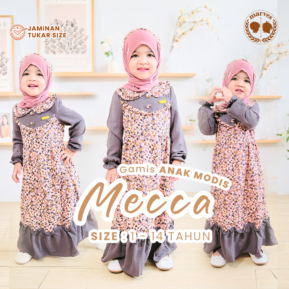 MARVES GAMIS ANAK PEREMPUAN FREE KERUDUNG USIA 2 HINGGA 14 TAHUN MODEL NEW MECCA