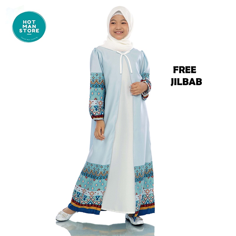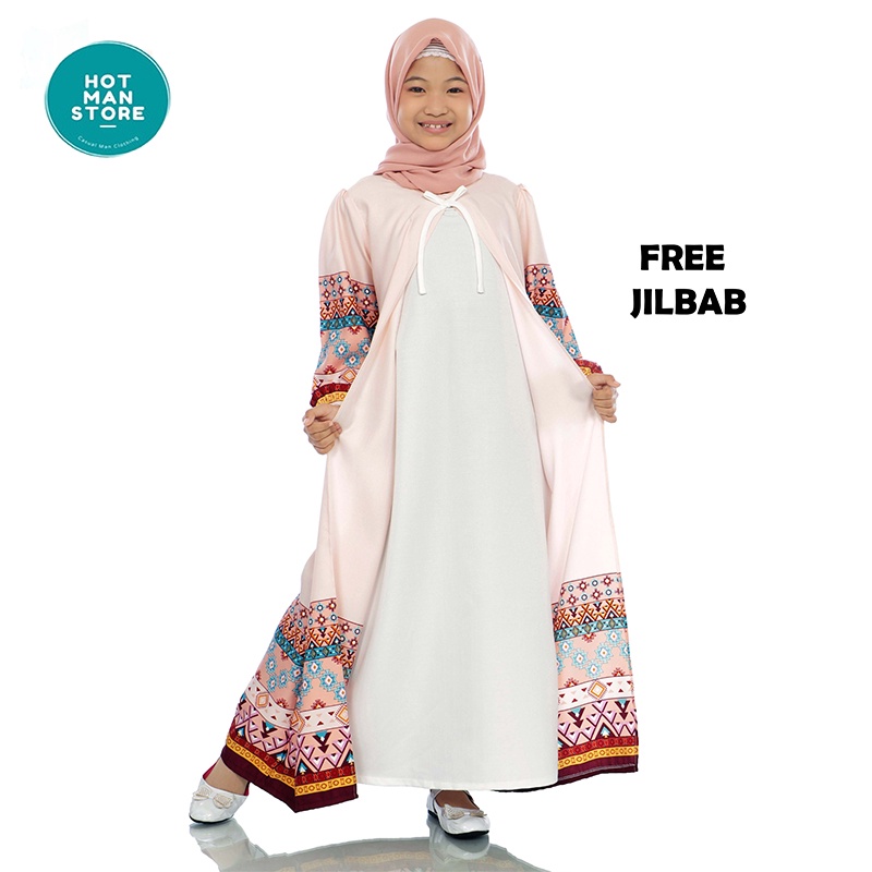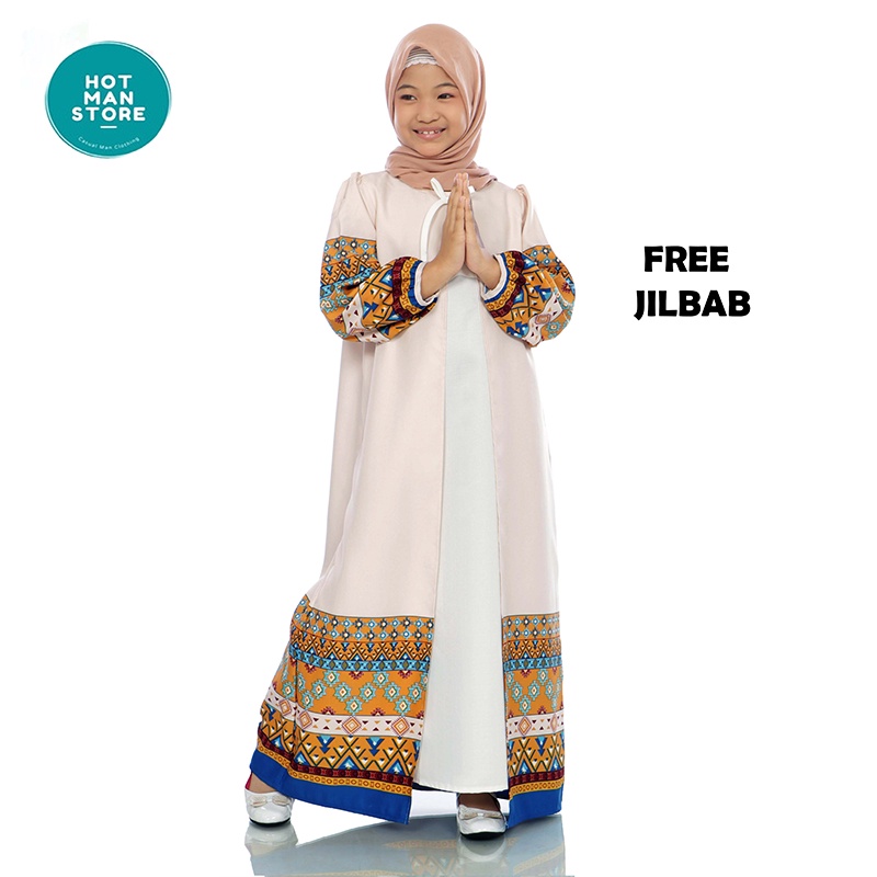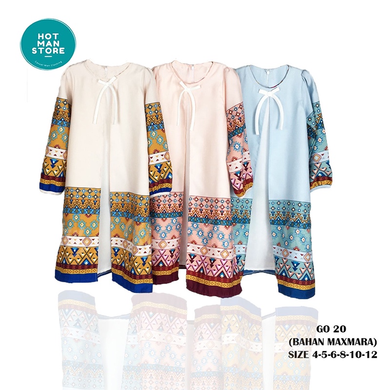 GAMIS ANAK BAJU ANAK PEREMPUAN MOTIF BATIK NUSANTARA PITA BAHAN MAXMARA ( FREE HIJAB)
