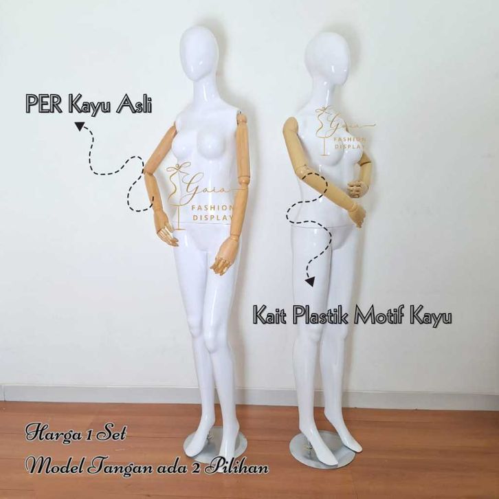 Patung Manekin Full Body Fiber Cewek Tangan Robot Kayu Manekin Cewek Tangan Bisa di Gerak Gerak-SET C