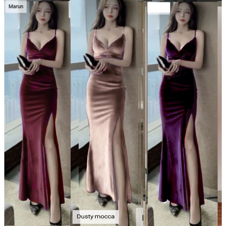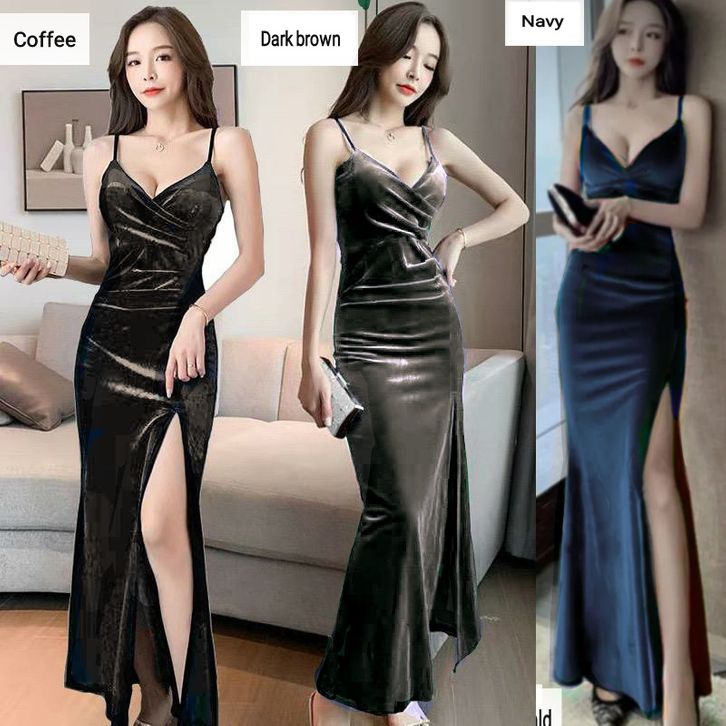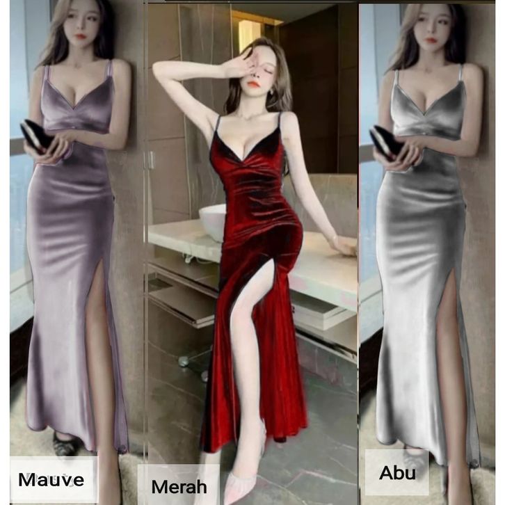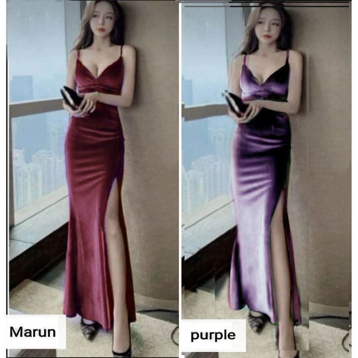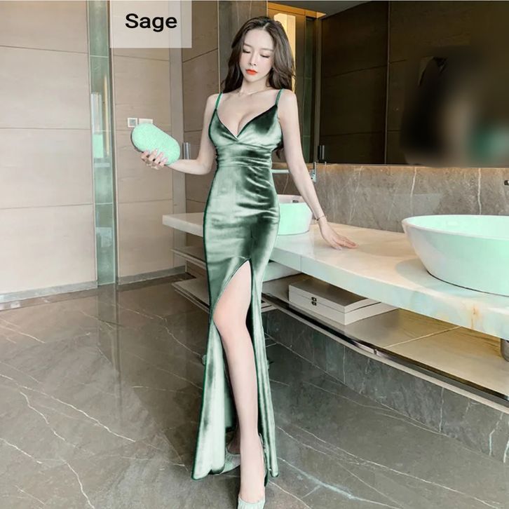 M-L Maxi dress Selina bludru velvet slit TERLARIS