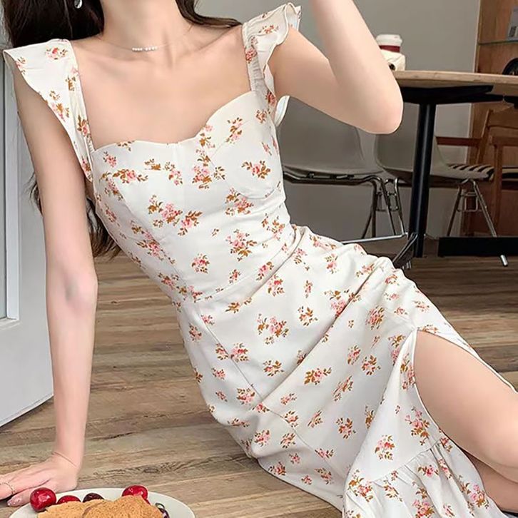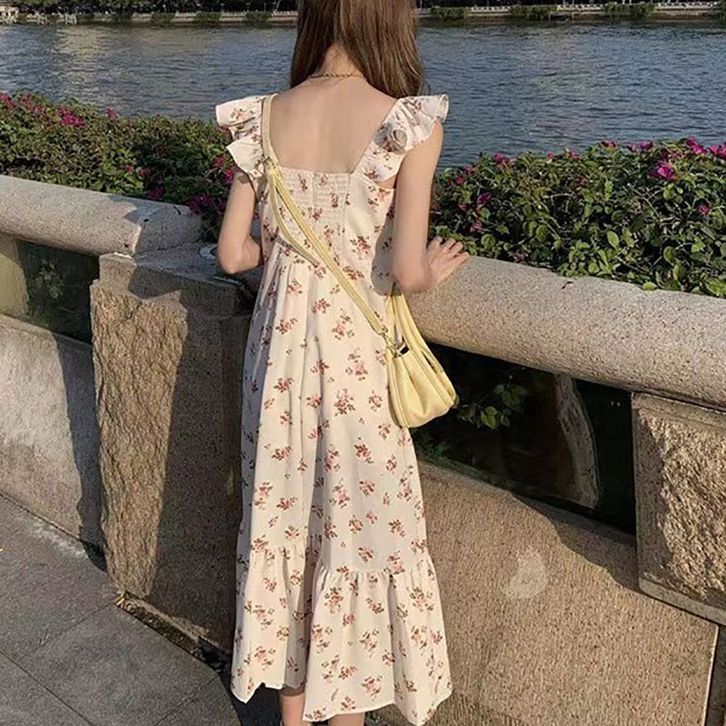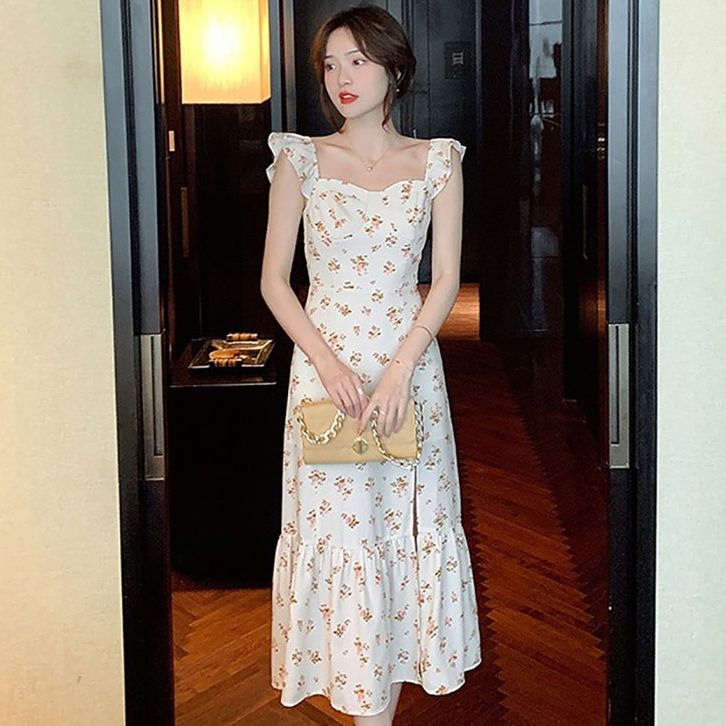 Newlan QZ081 Butterfly Sleeve Cream Midi Dress with Slit - Dress Casual Kasual/Korean Dress Korea