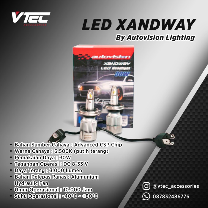 LED AUTOVISION XANDWAY 30 WATT H4 H7 H11 H16 H8 H27 HB3 HB4 - KUNING 2800K, H11/H16/H8