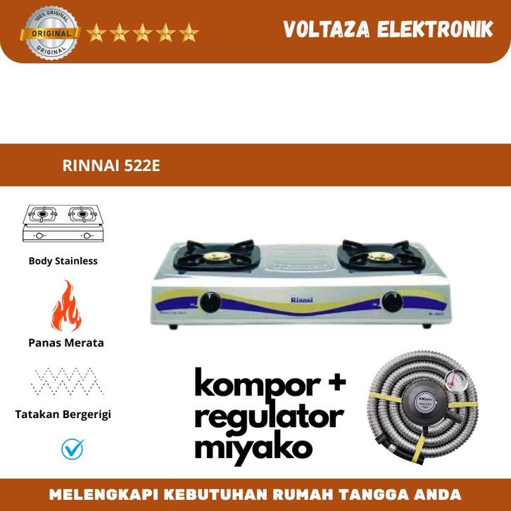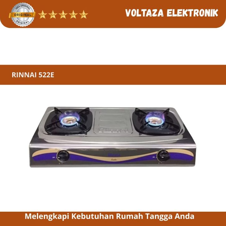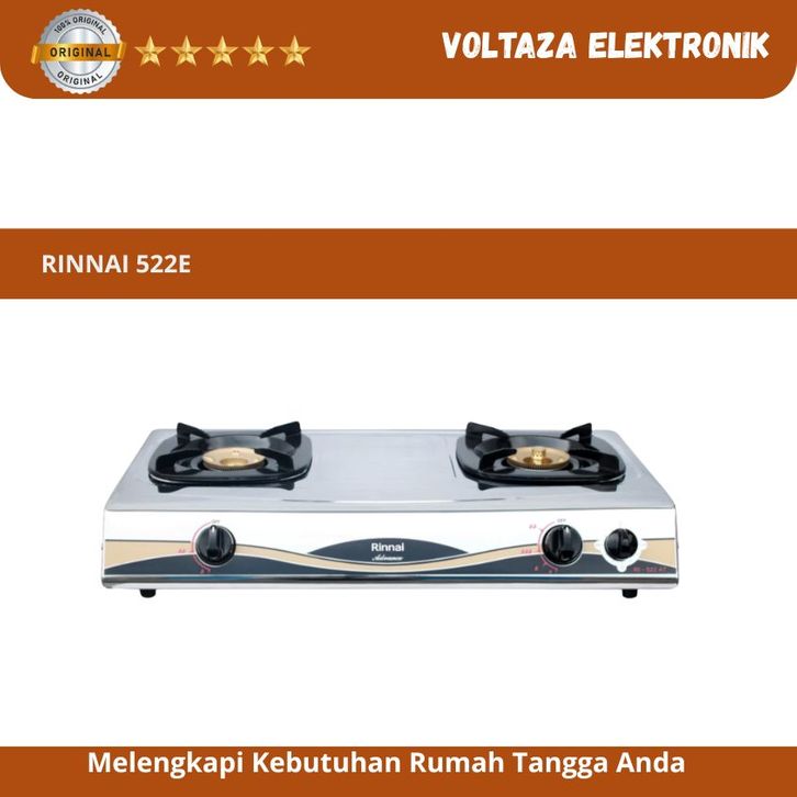[Star]Kompor Gas Rinnai 2 Tungku Original 522 E Body Stainless Kuningan Anti Karat Original Garansi Resmi