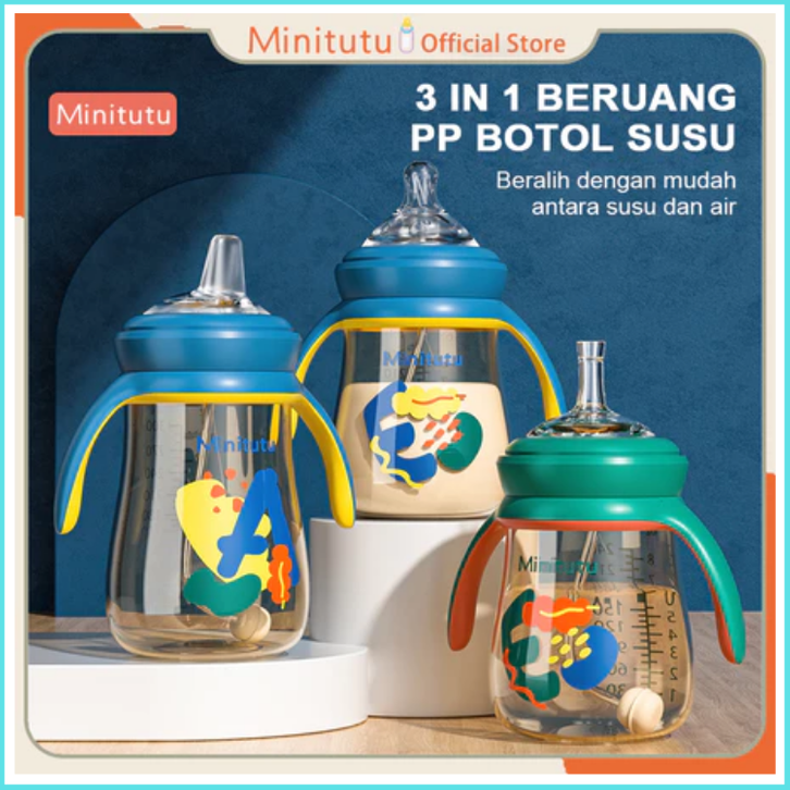 botol susu bayi minitutu botol minum anak 3 in 1 sets pp leher lebar widneck three uses dot sippy straw gravity ball