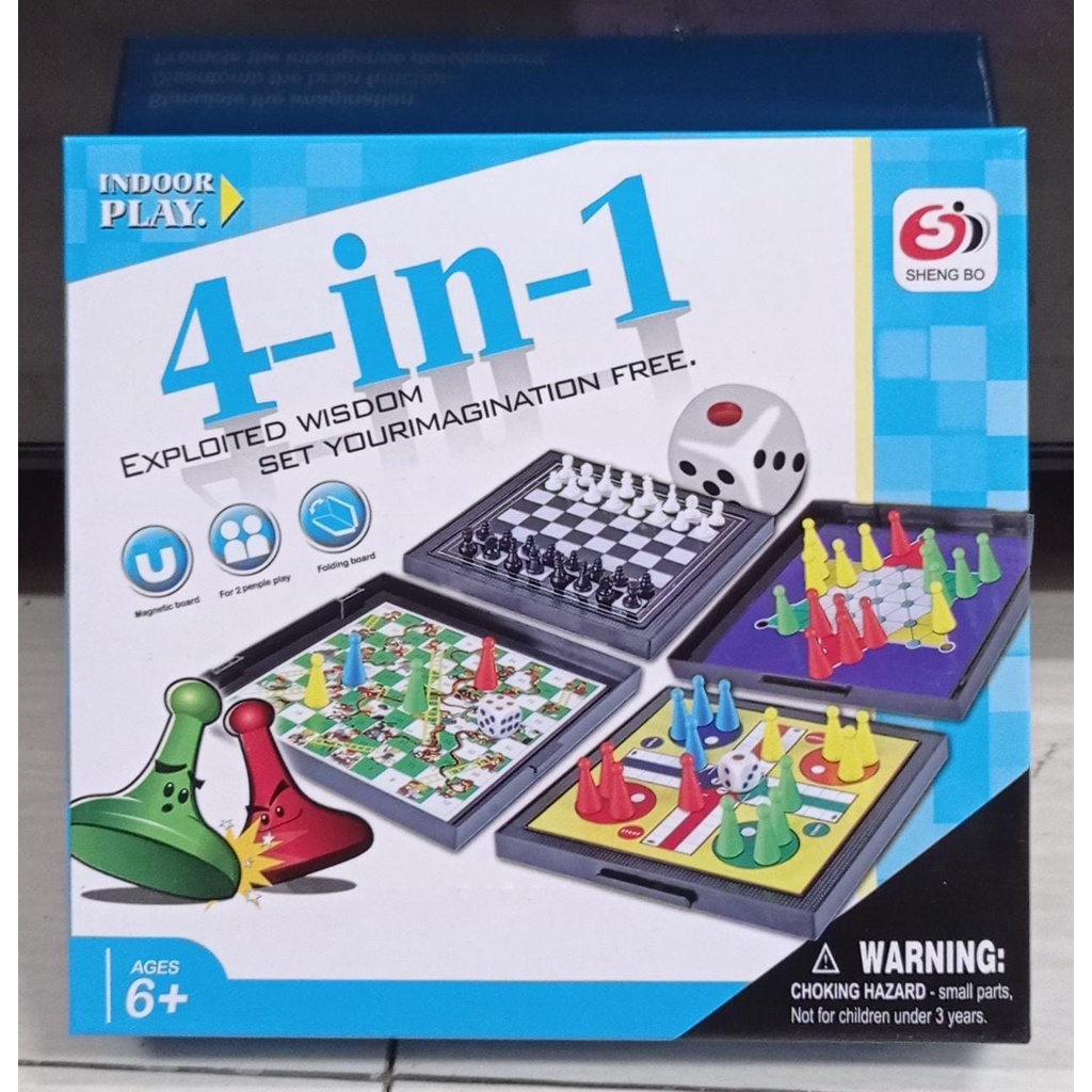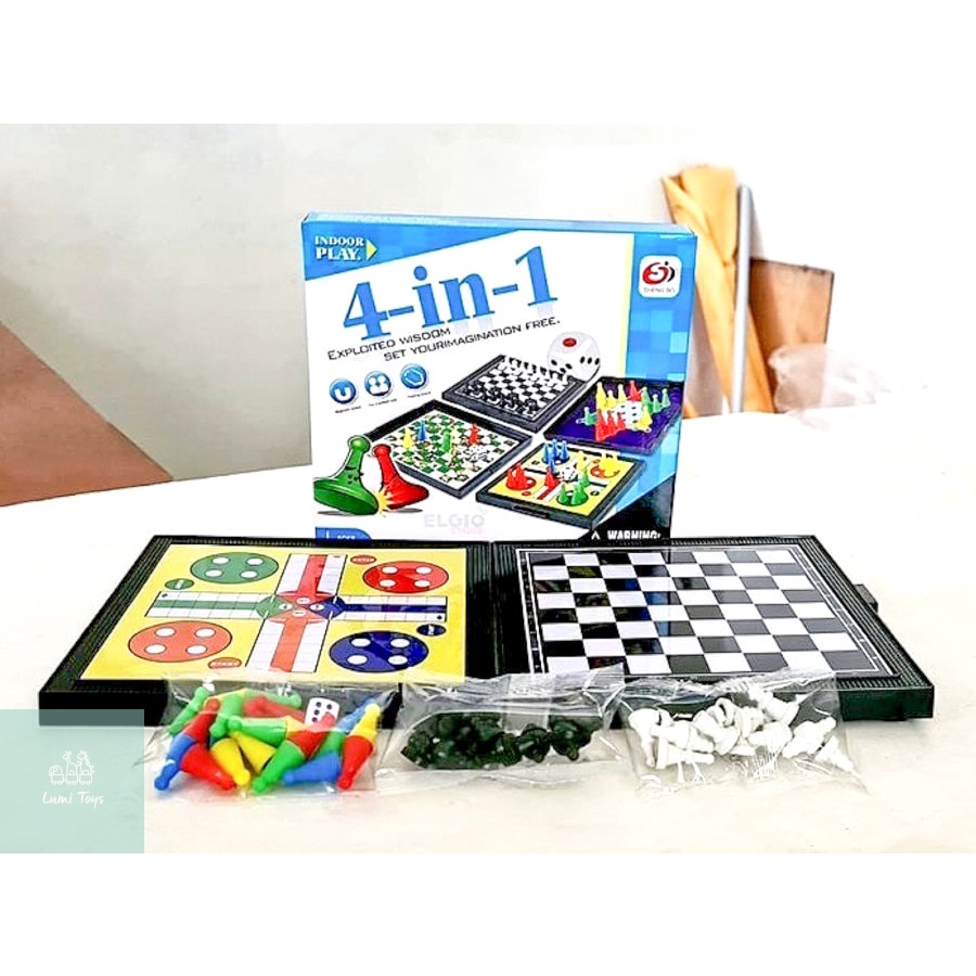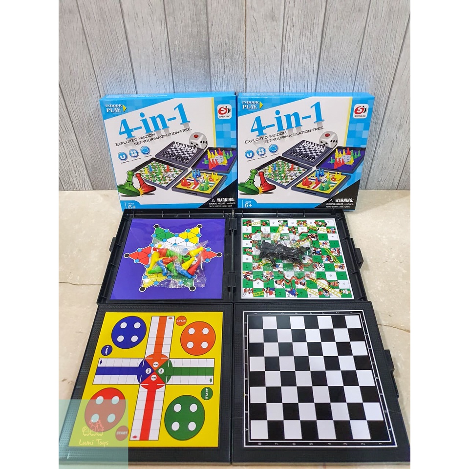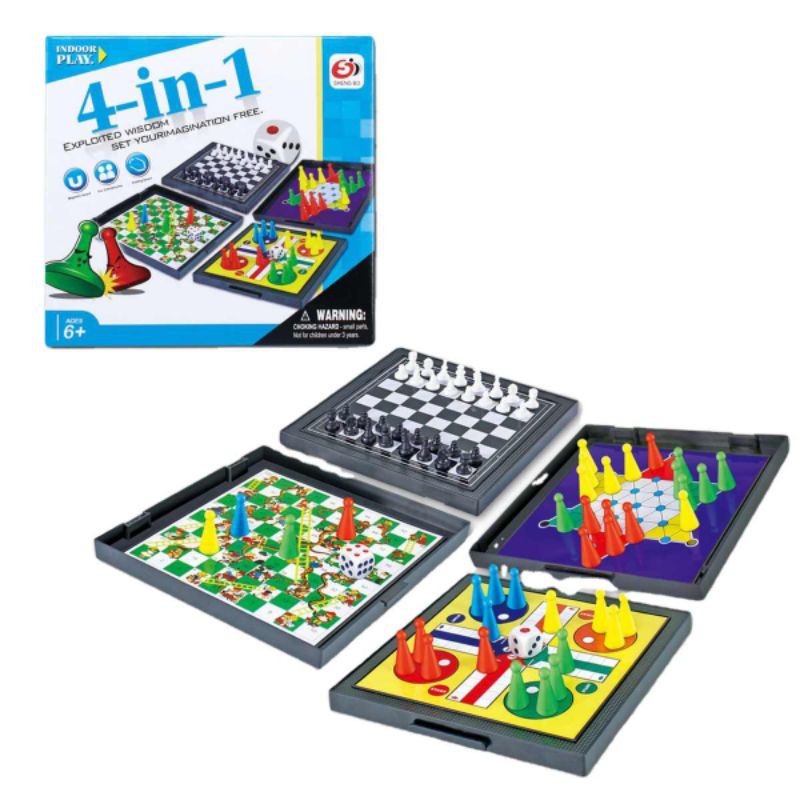 MAINAN BOARD GAME ULAR TANGGA MAGNET MAGNETIC 4 IN 1 CATUR LUDO HALMA