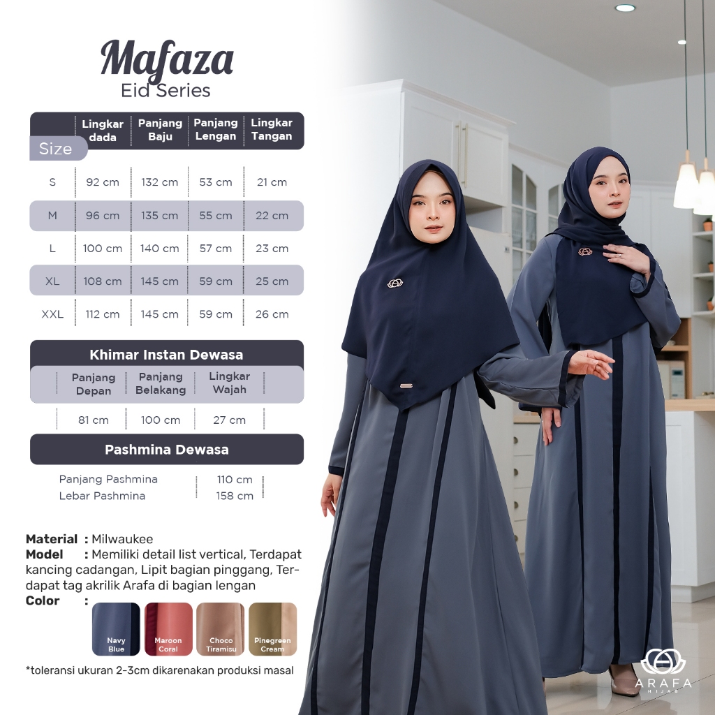 ARAFA HIJAB - MAFAZA DRESS SET MOM - PASHMINA | GAMIS DEWASA | BAHAN MILWAUKEE