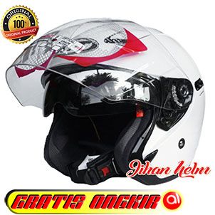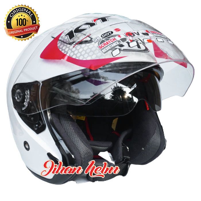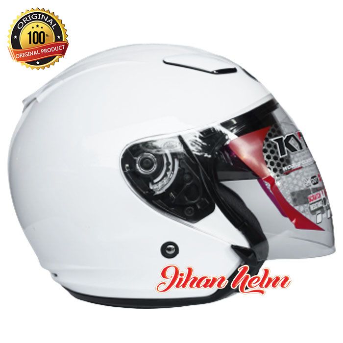 Helm kyt Half face / Helm Kyt Dj Maxi Double Visor Solid White Terlaris