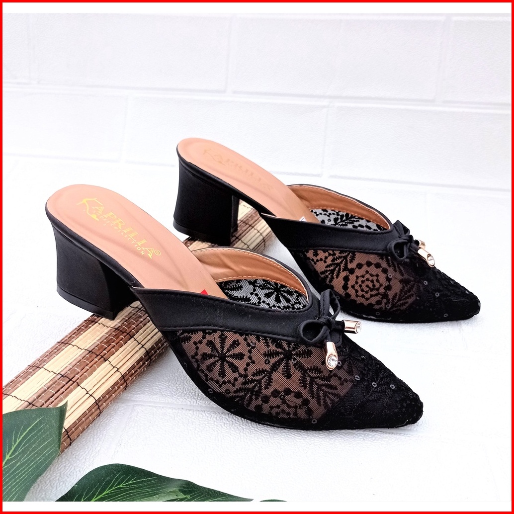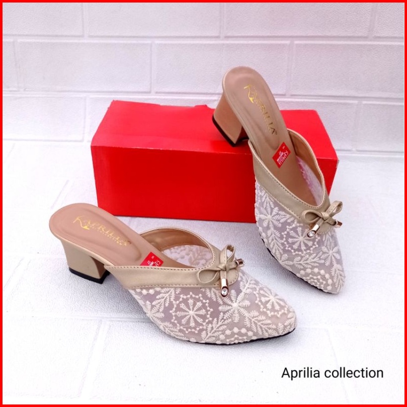 Heels Pesta Wanita Hak Tahu 5cm Terbaru Kekinian Sendal Selop Brukat Pengantin Wanita Sandal Pesta Kondangan Perempuan S