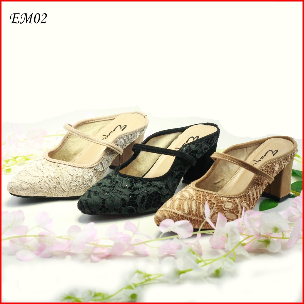 Emye - High Heels Wanita Sandal Pesta Brukat Hak Tahu 7cm Emo2 Hak 7 Cm Sepatu Pengantin Murah