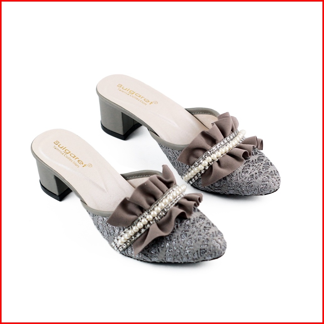 High Heels Wanita Sandal Pesta Mutiara Hak Tahu Brukat Mc-r 06