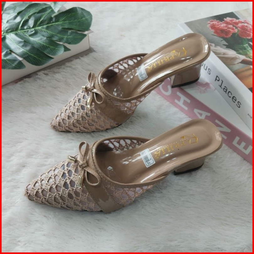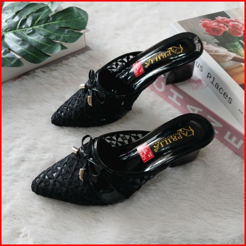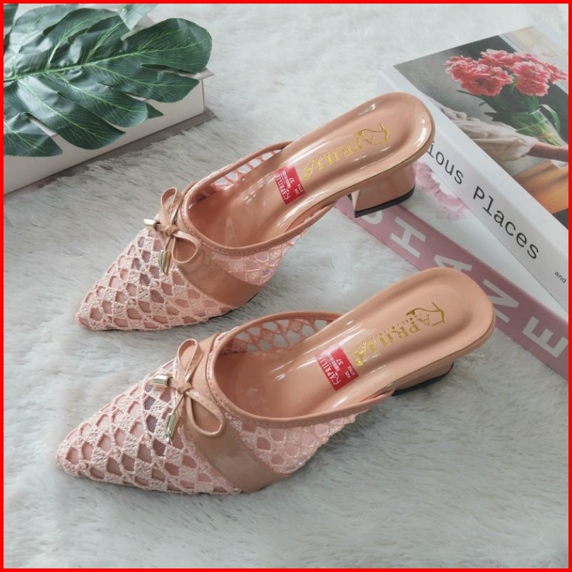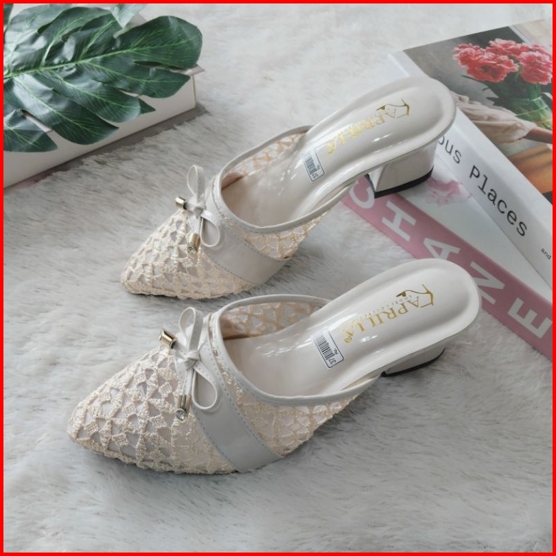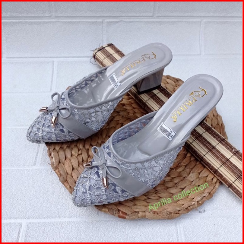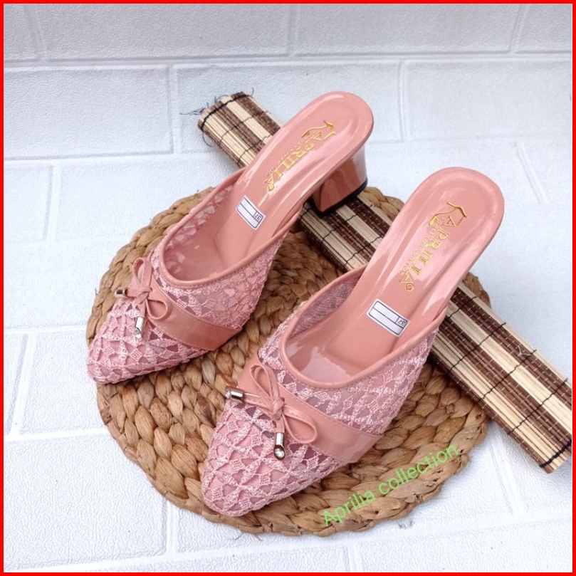 Aprilia Sandal Pesta Wanita Hak Tahu 5cm Bustong Brukat Terbaru Sandal Wanita Pump Heels Pesta 5cm Sepatu Sendal Wanita