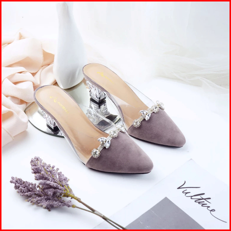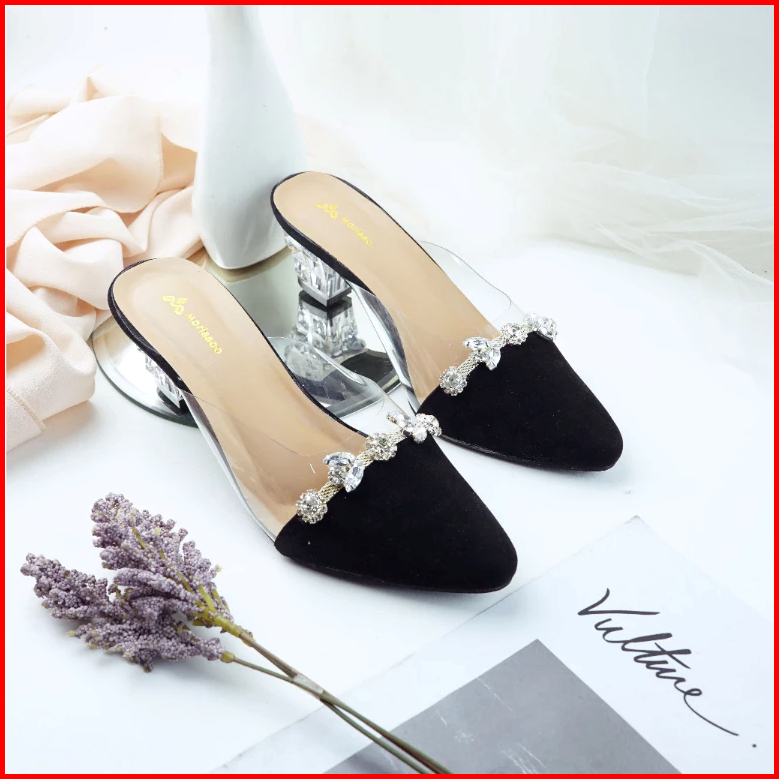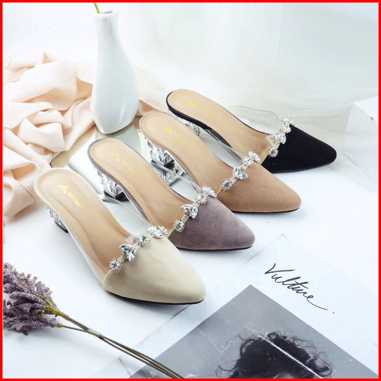 Sendal Wanita Heels Slop Payet Sandal Pesta Wedding Mt 39