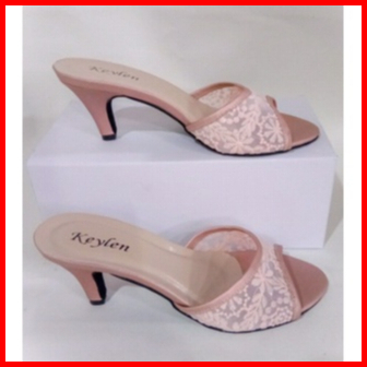 Sandal Wanita High Heels Sandal Murah Sandal Pesta Sendal Heels Premium Hak 7 Cm Brukat Nabila