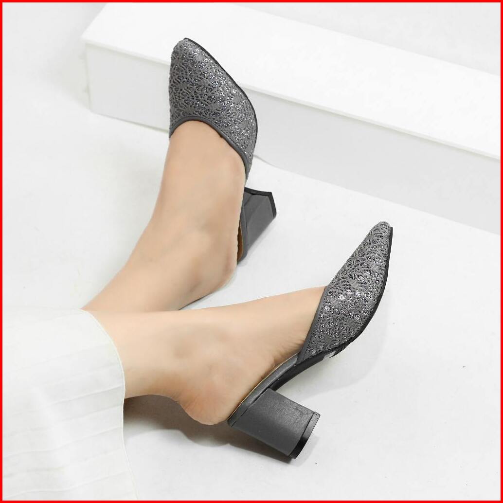 High Heels Wanita Sandal Heels Wanita Pesta Mules Brukat R 19