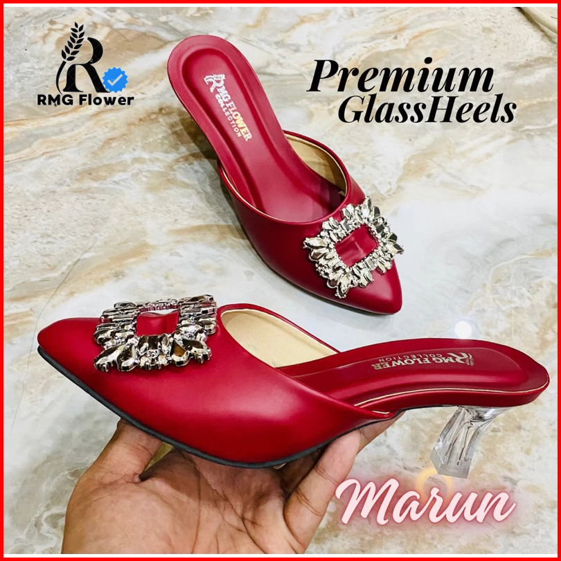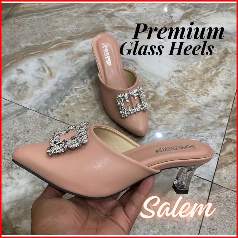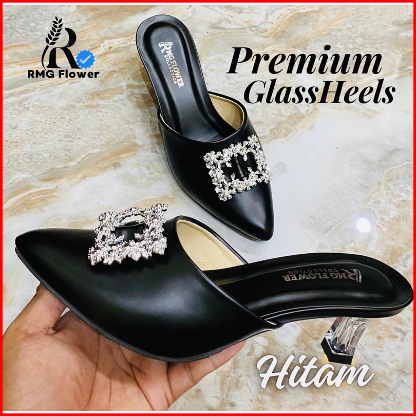 Rmg37 Sandal Sepatu Wanita Heels Hak Kaca 5cm Terbaru Mewah Elegan Kekinian Pesta Kondangan Wisuda Shoes