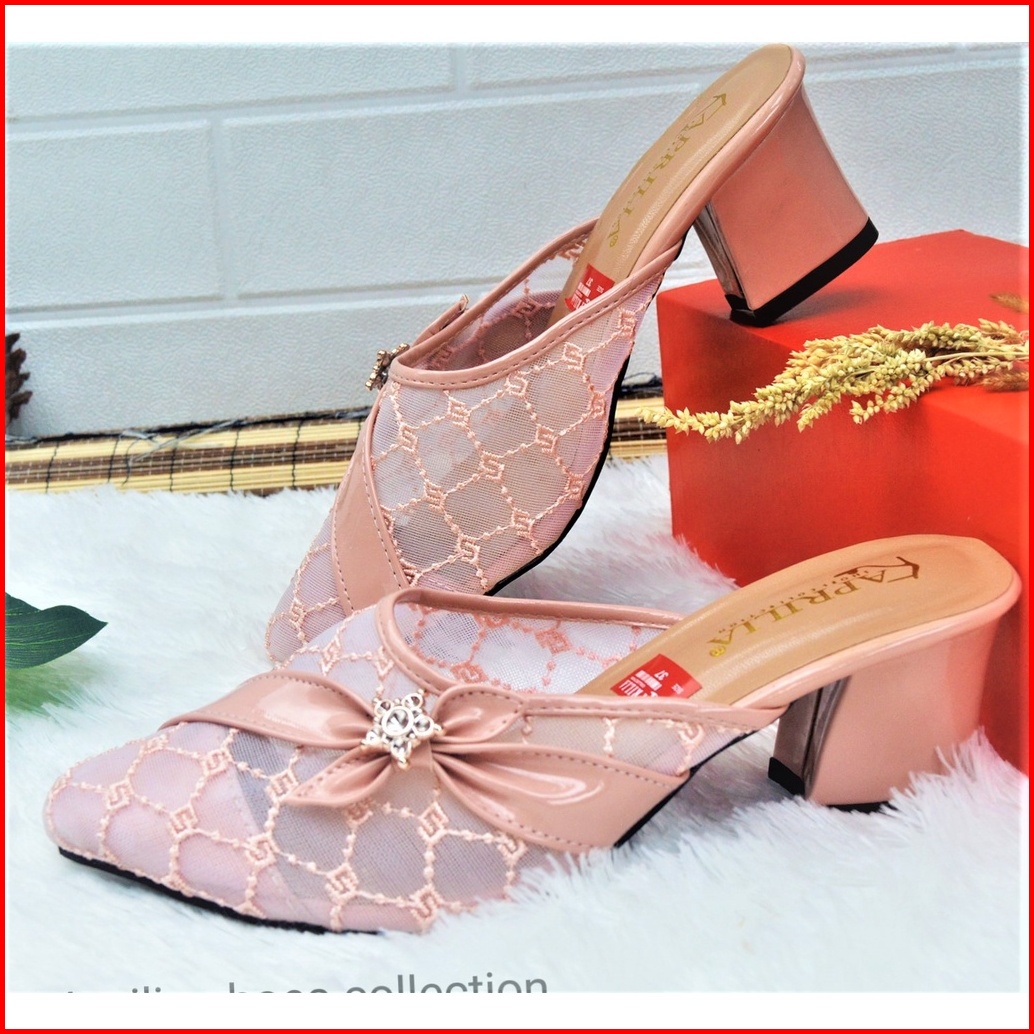 Sandal Sepatu Heels Brukat Pesta Wanita Terbaru Hak Tahu 5cm Aprilia Collection Sendal Sepatu Heels Pengantin Pernikahan