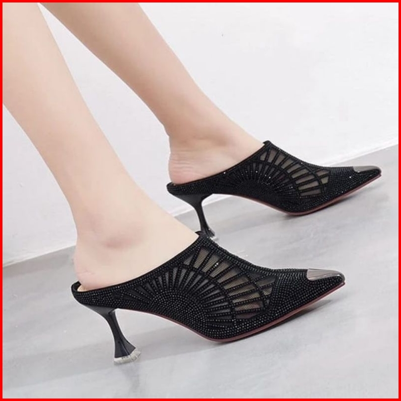 Series Ip 01 Sandal High Heels Pesta Wanita Elegan Hak Lancip 7 Cm Brukat Kondangan Mewah