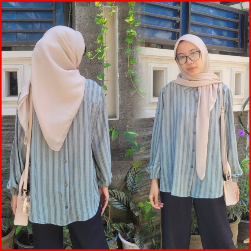 Ready Stock Blouse Kemeja Motif Salur Renes Store