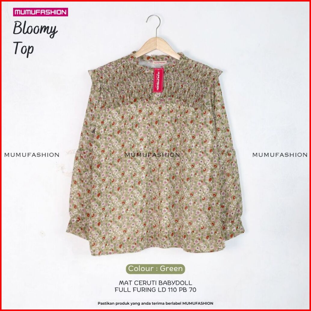 Bhl - Bloomy Top Atasan Ceruty Babydoll Full Furing Ld 110 By Mumufashion Solo