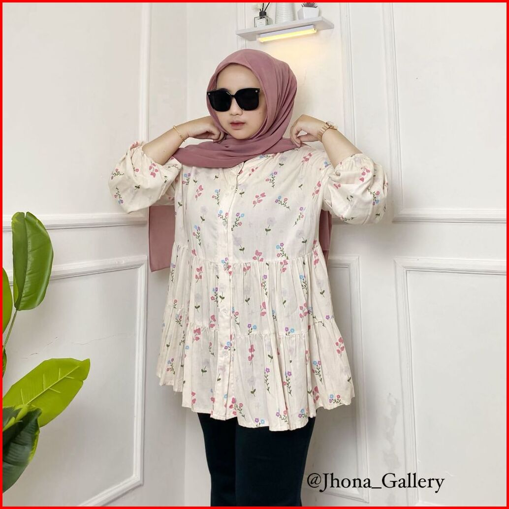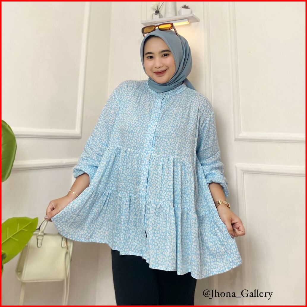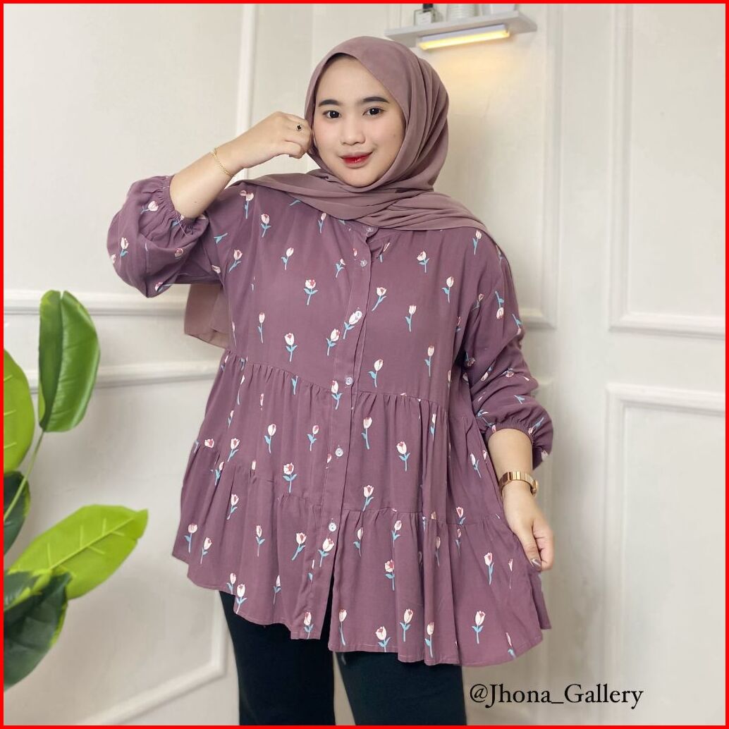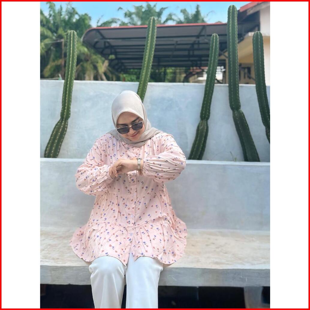 Kayla Blouse Kemeja Wanita Rempel - Ld 120 Cm - Bahan Rayon Viscose Premium - Atasan Baju Panjang