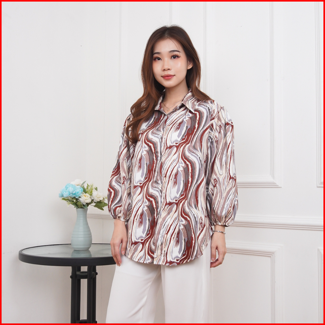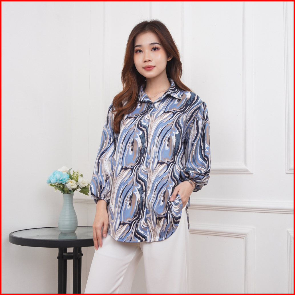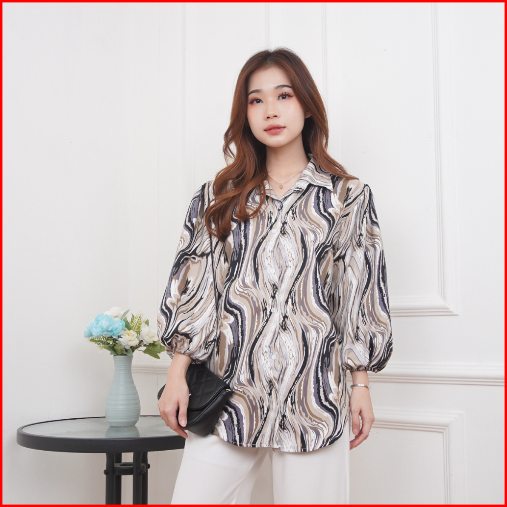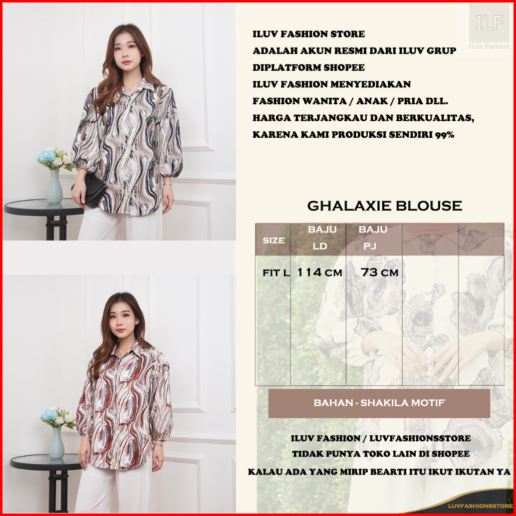 Il - Ghalaxie Blouse Marble Wanita Atasan Blouse Shakila Premium Kemeja Motif Terbaru