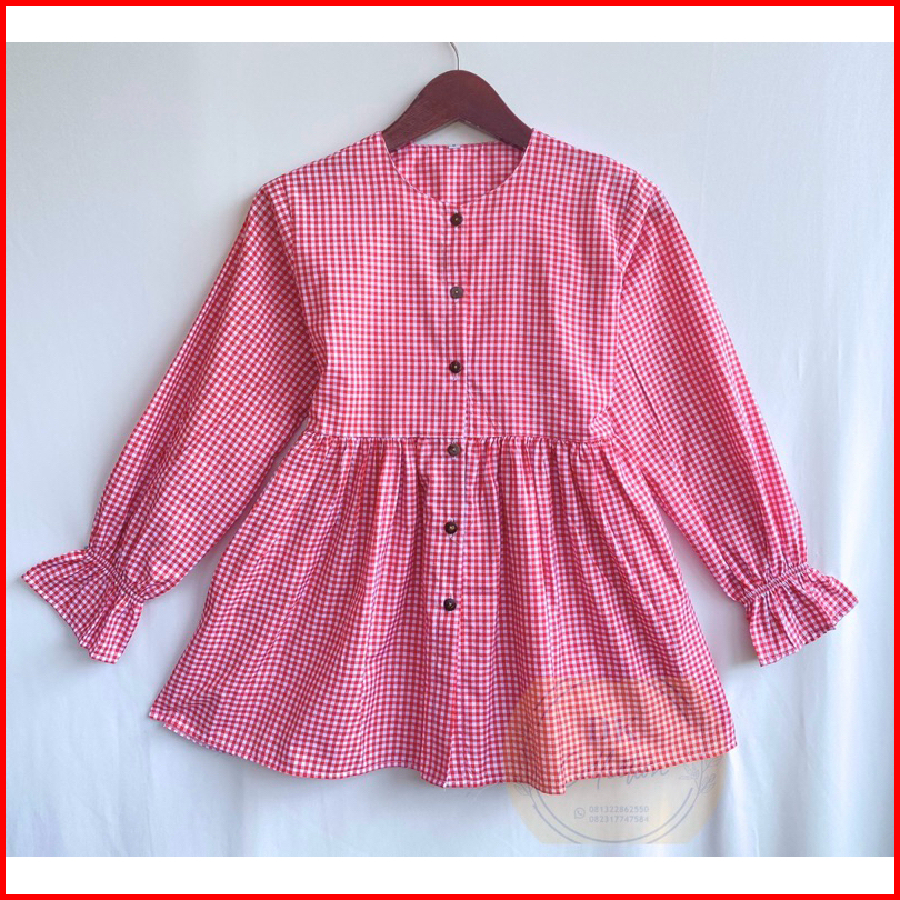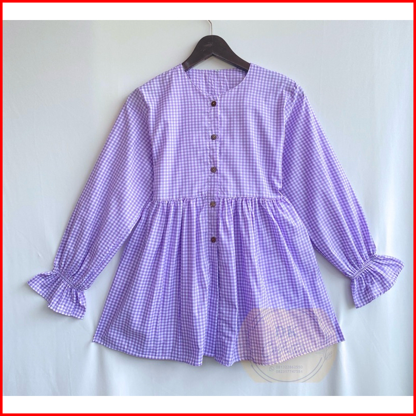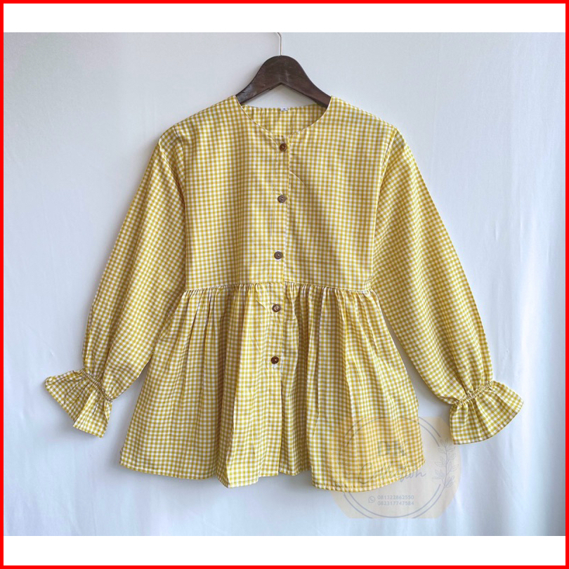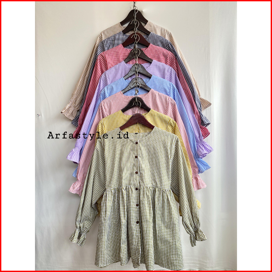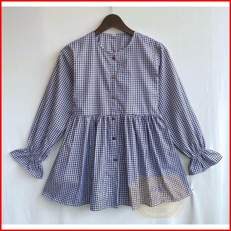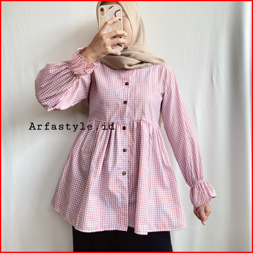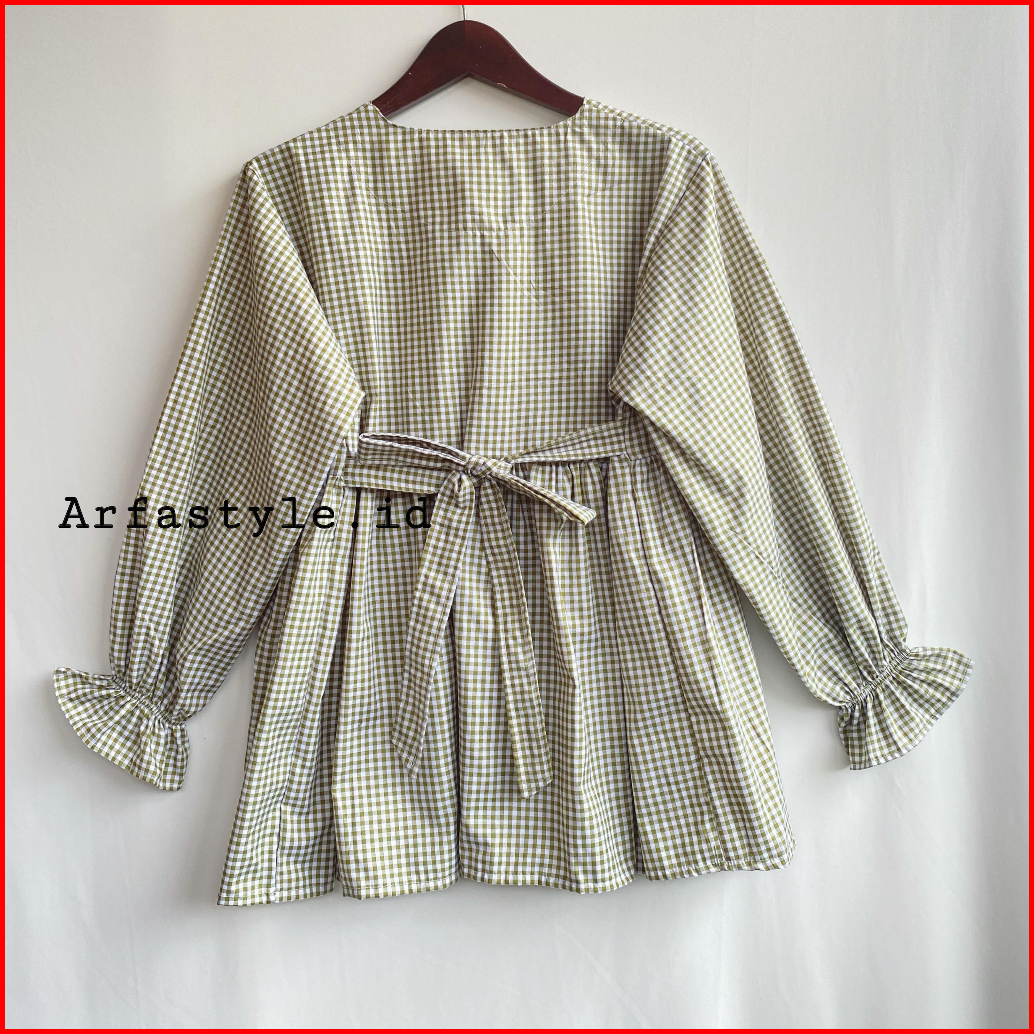 Arfa Style Realpict Wony Blouse - Atasan Wanita Motif Kotak Model Terbaru - Termurah
