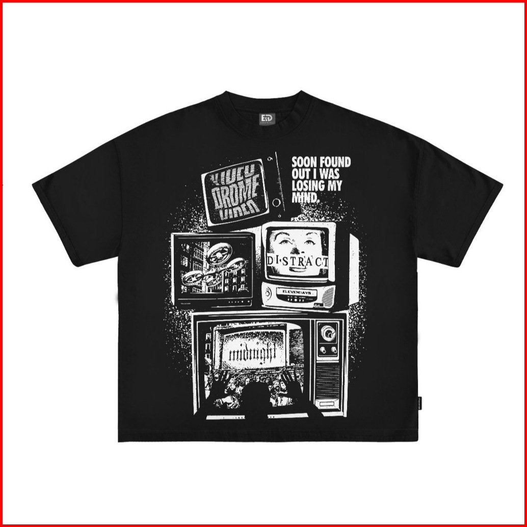 Elevendays Boxy Fit Distract Black Kaos Oversized Pria Dan Wanita Cotton Combed 20s 200gsm