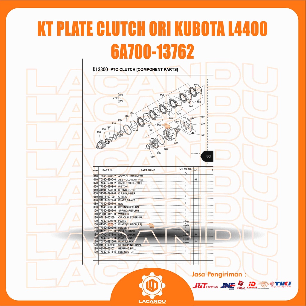 KT PLATE CLUTCH ORI KUBOTA L4400 FOR COMBINE HARVESTER LACANDU PART