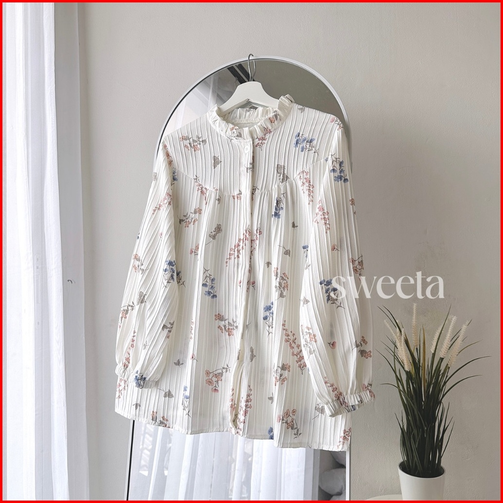 Sweeta Blus U Rample Motif Flower Lavanda Premium Ld 115 Cm Korea Style Kancing Dapat Dibuka Atasan Pakaian Wanita Musli