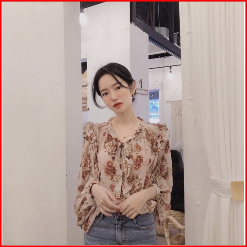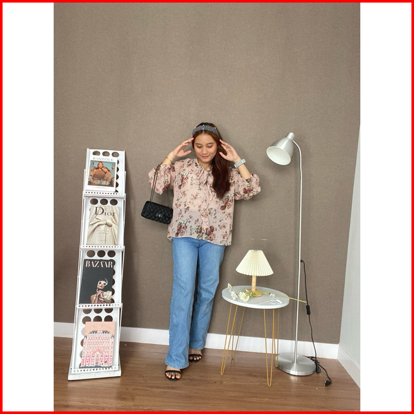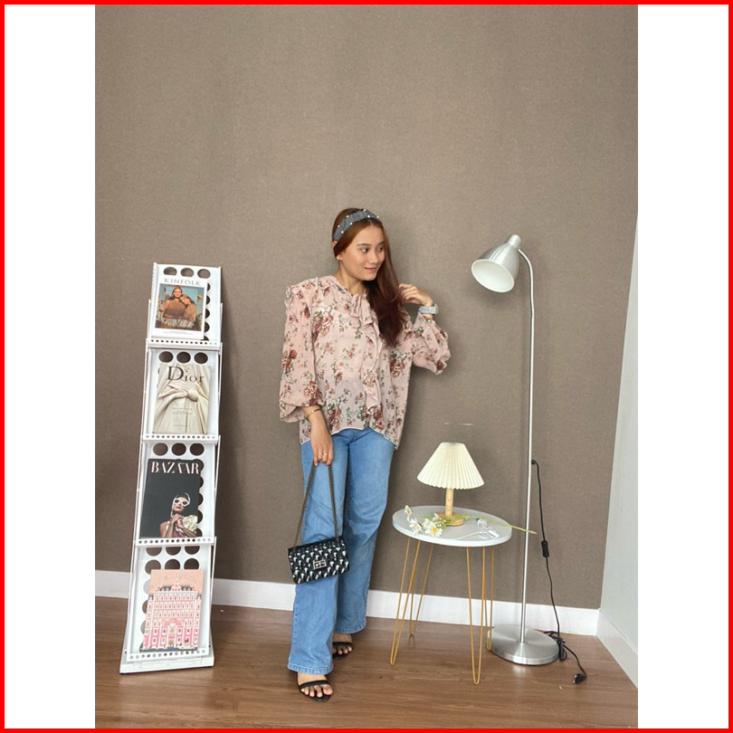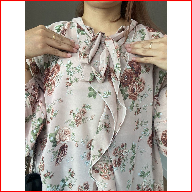 Chelsea Atasan Motif Bunga Lengan Panjang Wanita Hijab Friendly Casual