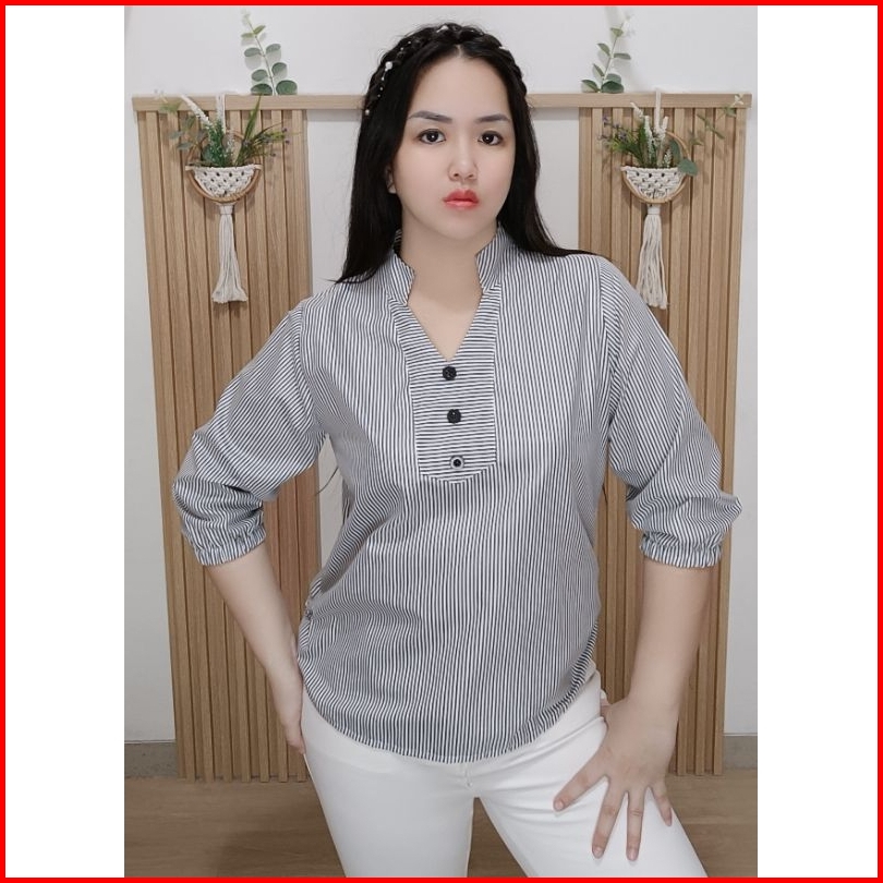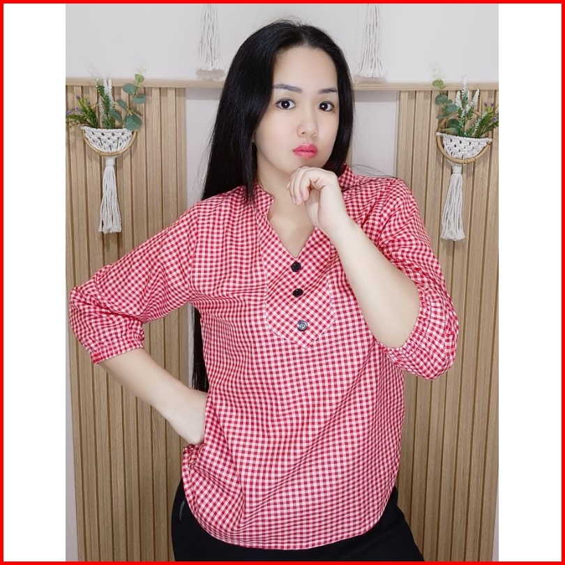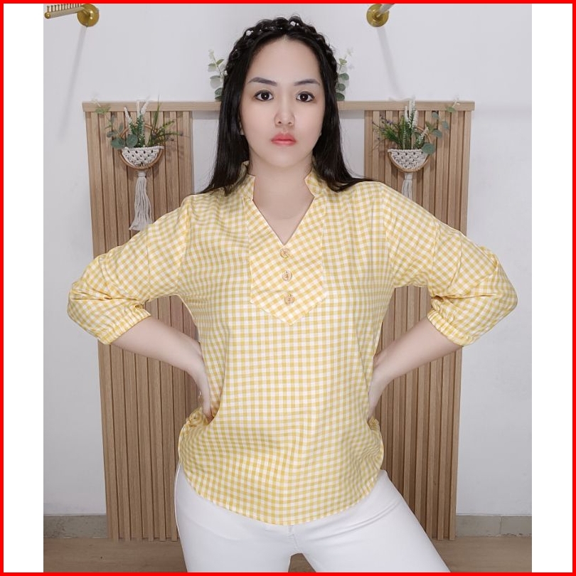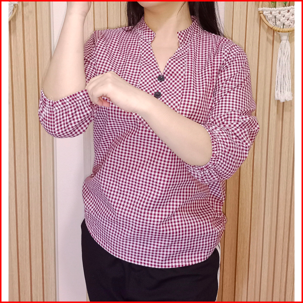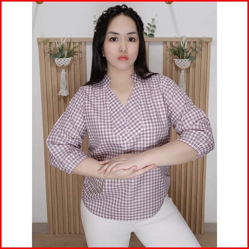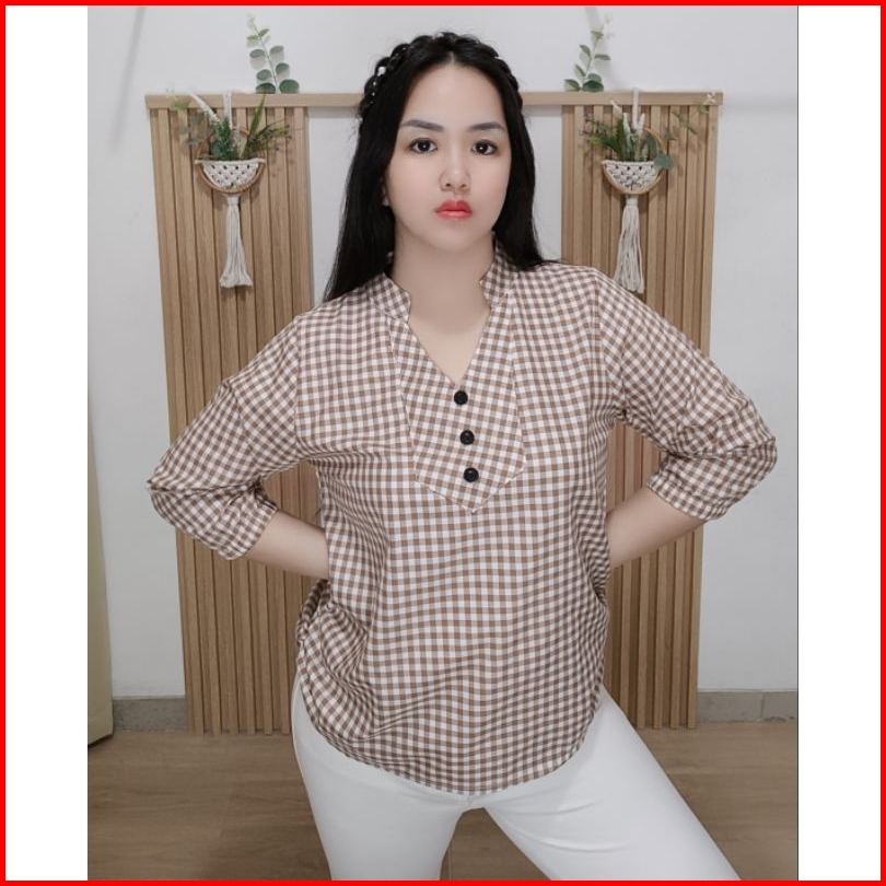 Jjj Lyn - Blouse Naysoo Atasan Wanita Motif Kotak Atasan Kerja Atasan Kasual