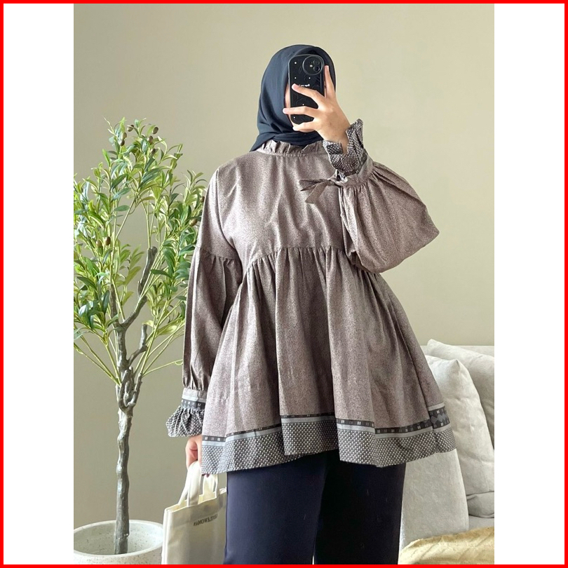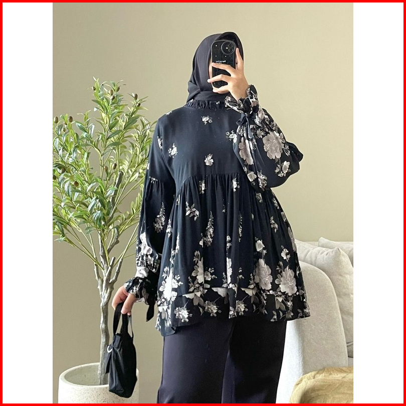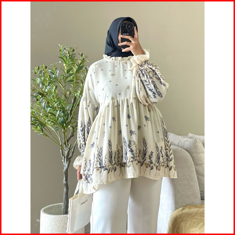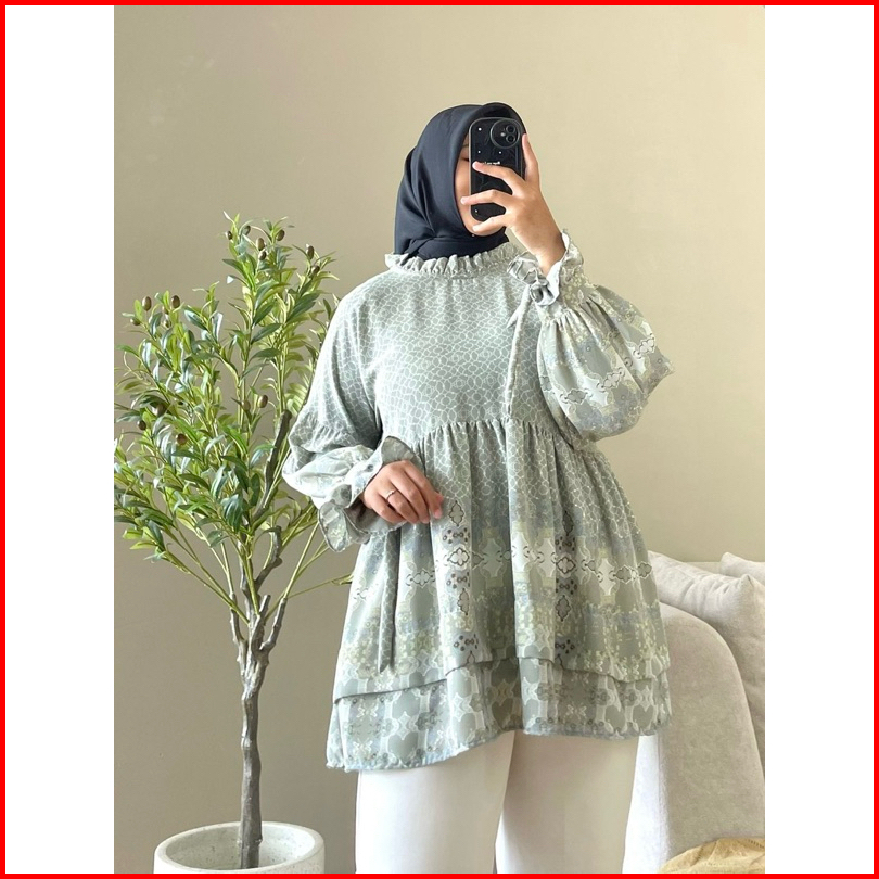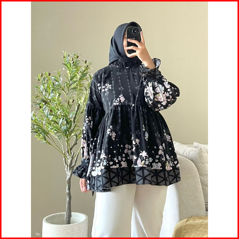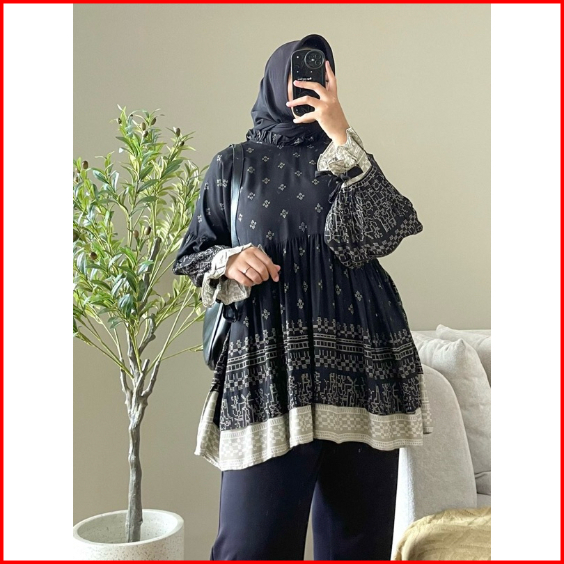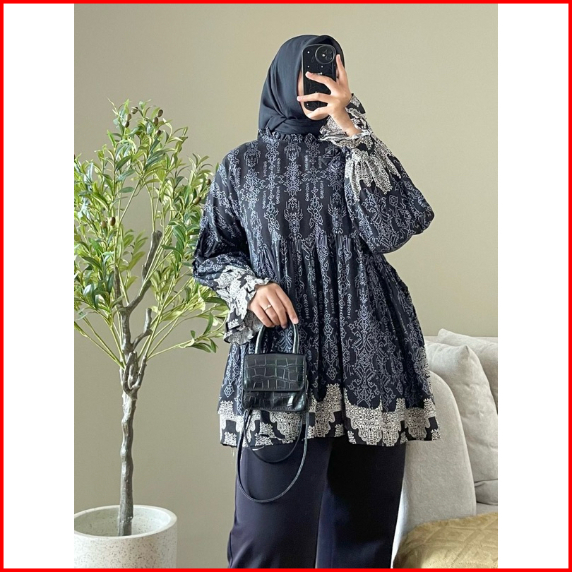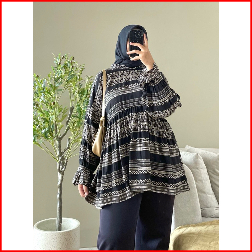 Hanako 14 Tunik Batwing Rempel Motif Atasan Wanita