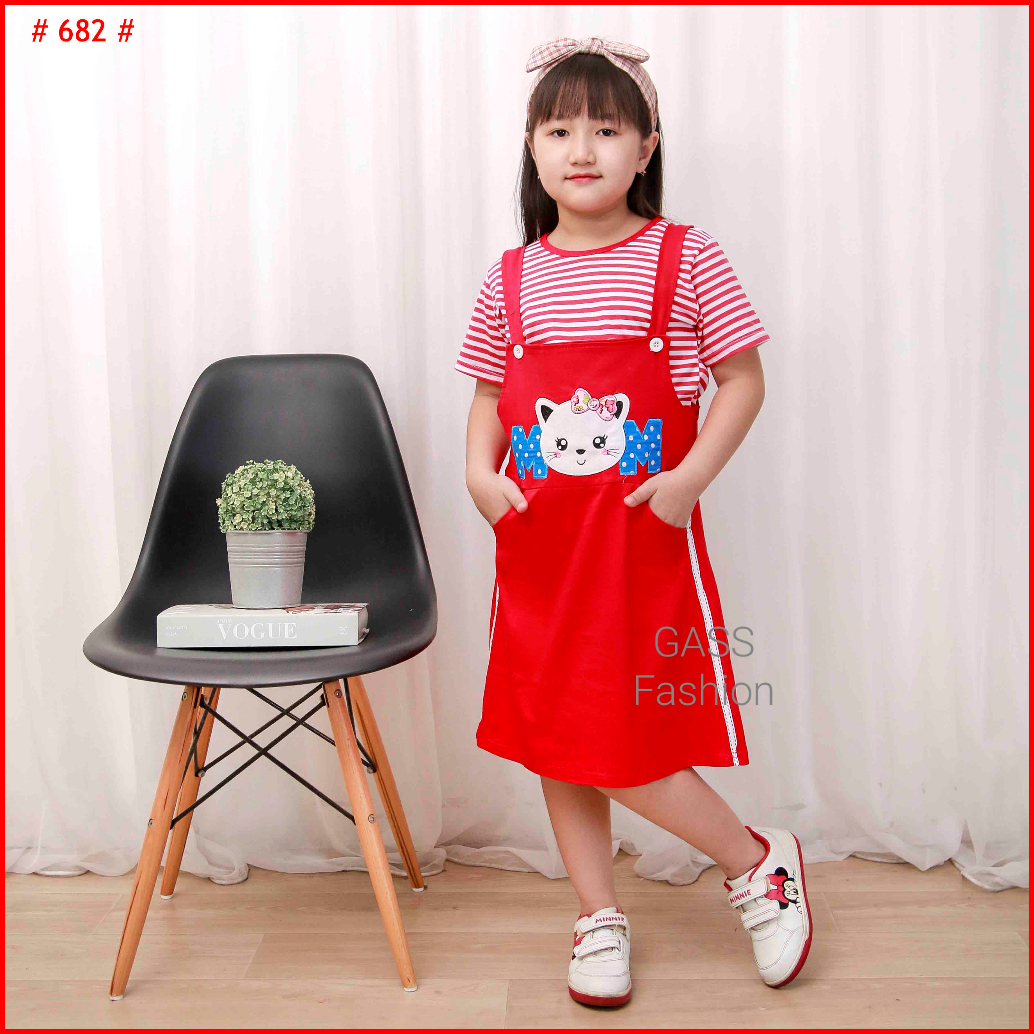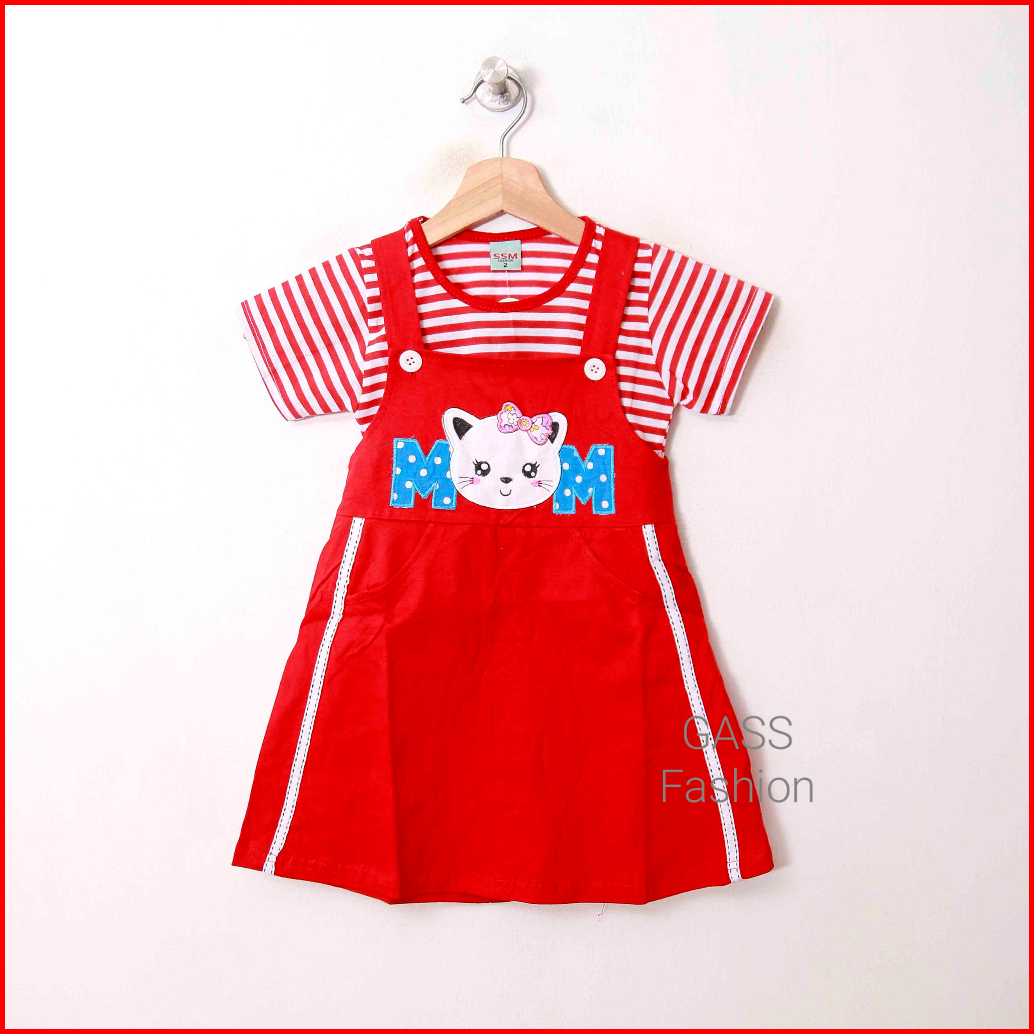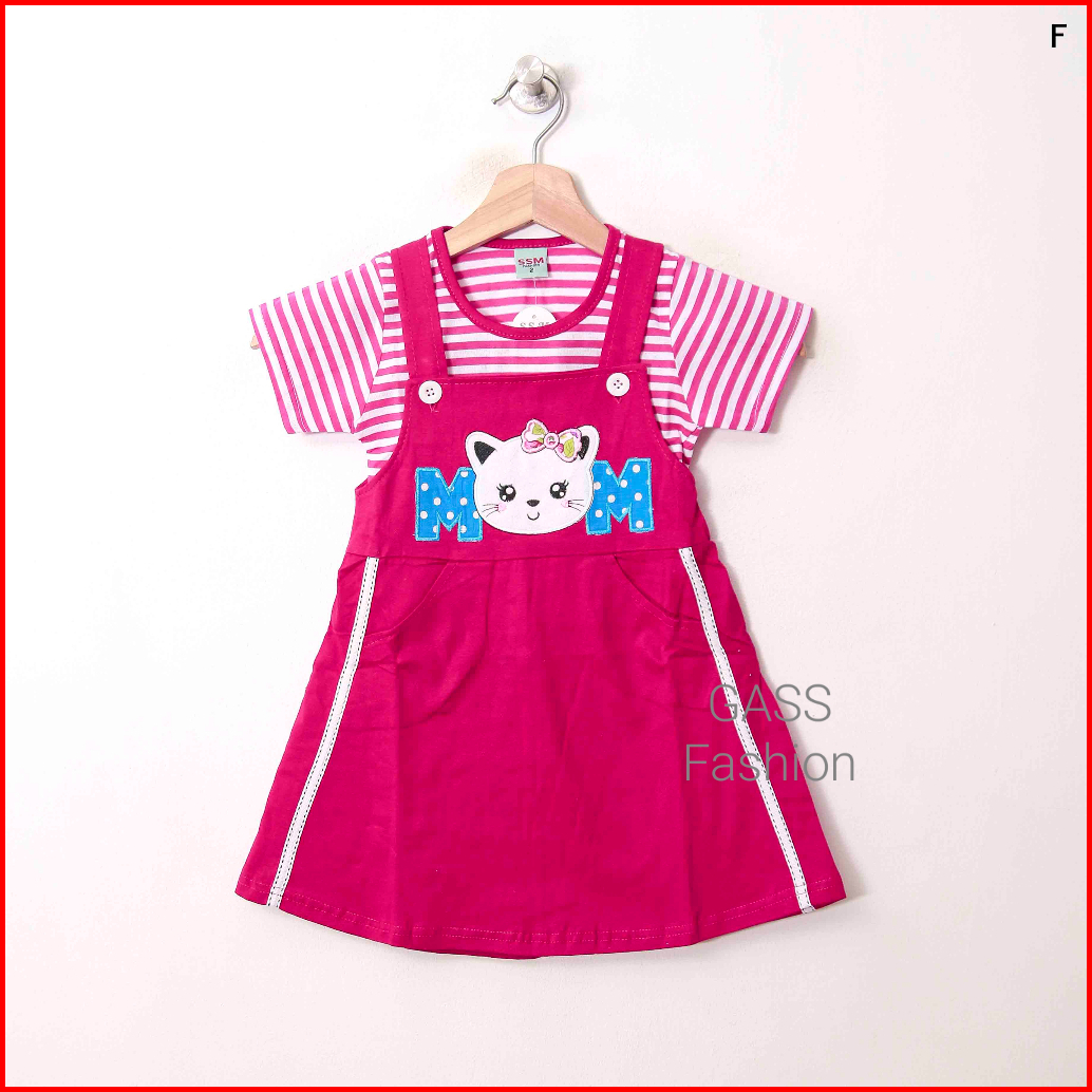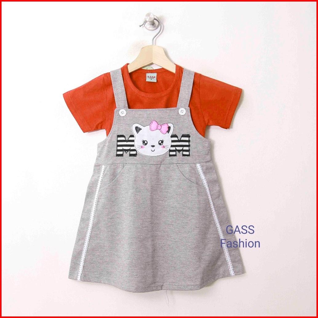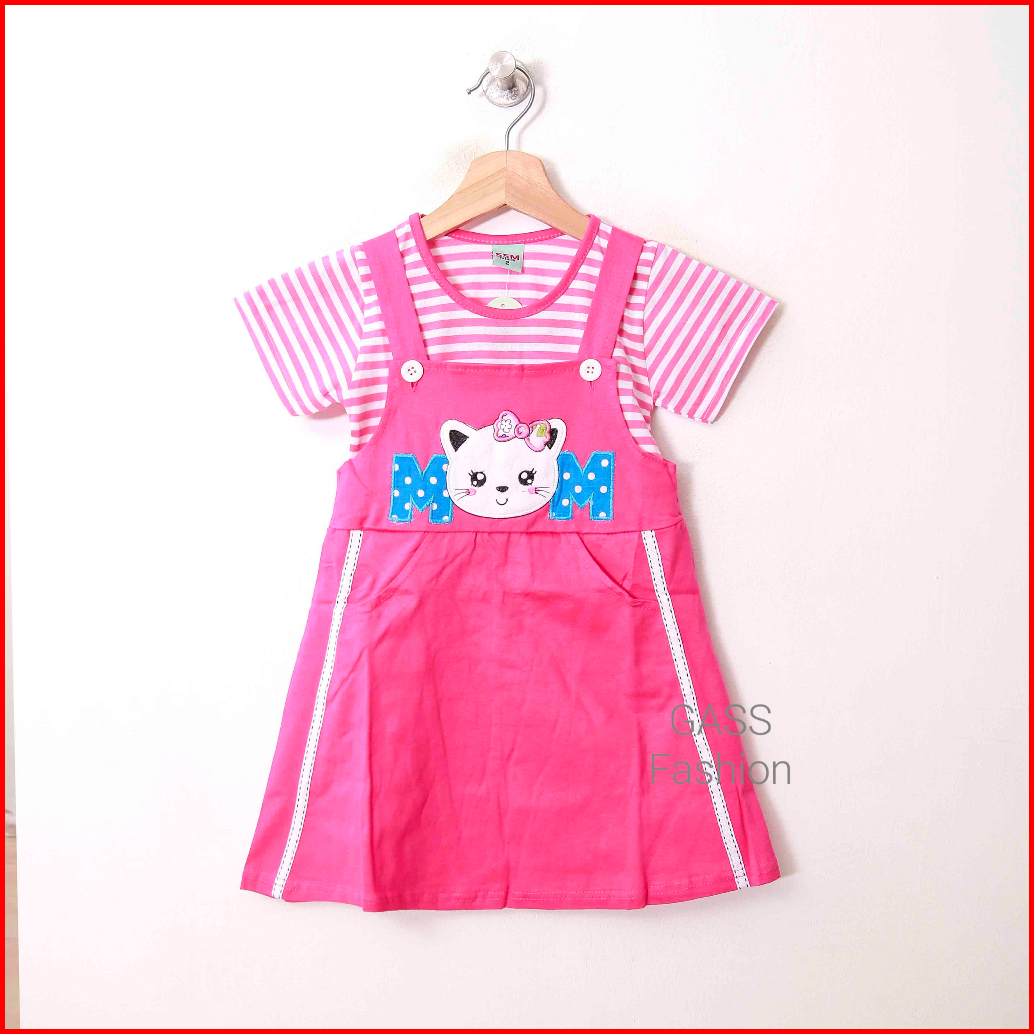 Baju Anak Cewek Perempuan Dress Overall Usia 1 2 3 4 5 6 7 8 Tahun Bordir Kucing Mom