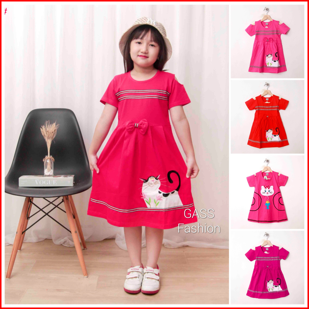 Pakaian Anak Perempuan Dress Sabrina Usia 1 2 3 4 5 6 7 8 Tahun Bordir Kucing
