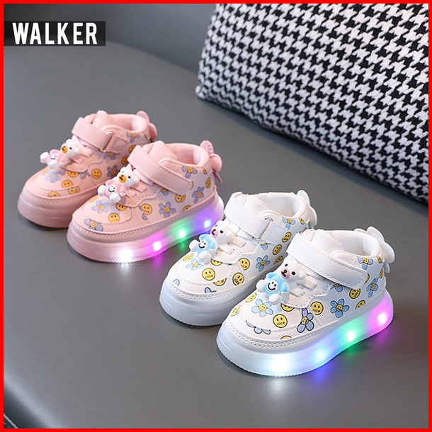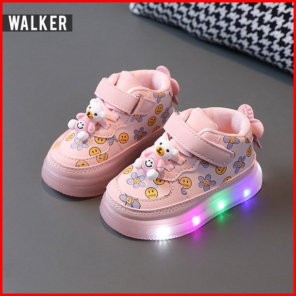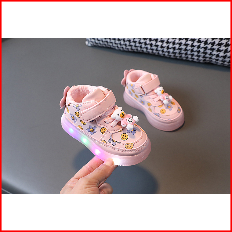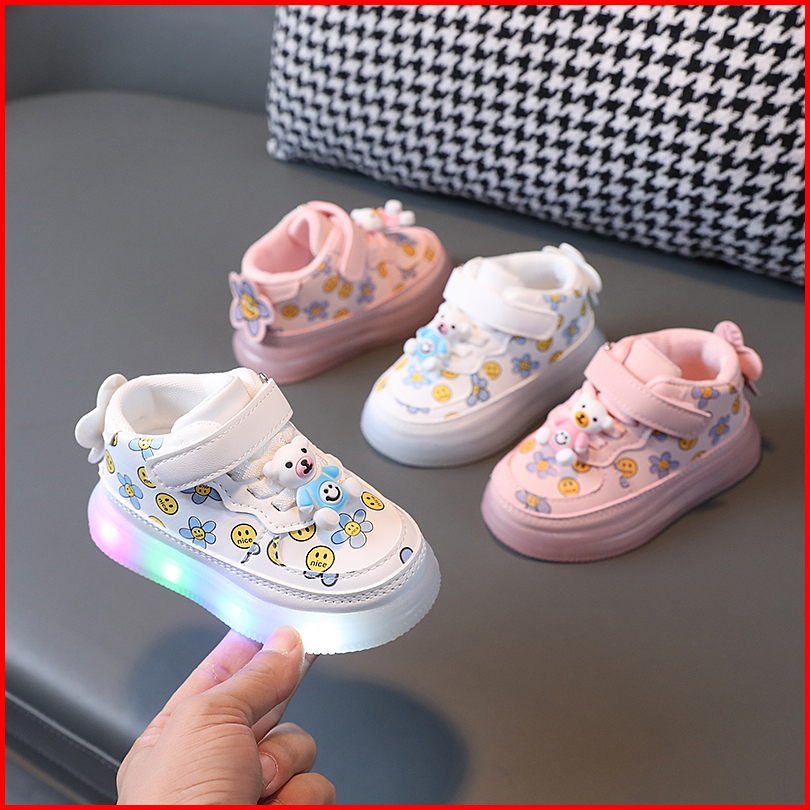 Lkm402 Sepatu Sport Anak Perempuan Casual Bayi Dengan Lampu Led Sekolah 1kg 3pc Little Kuma