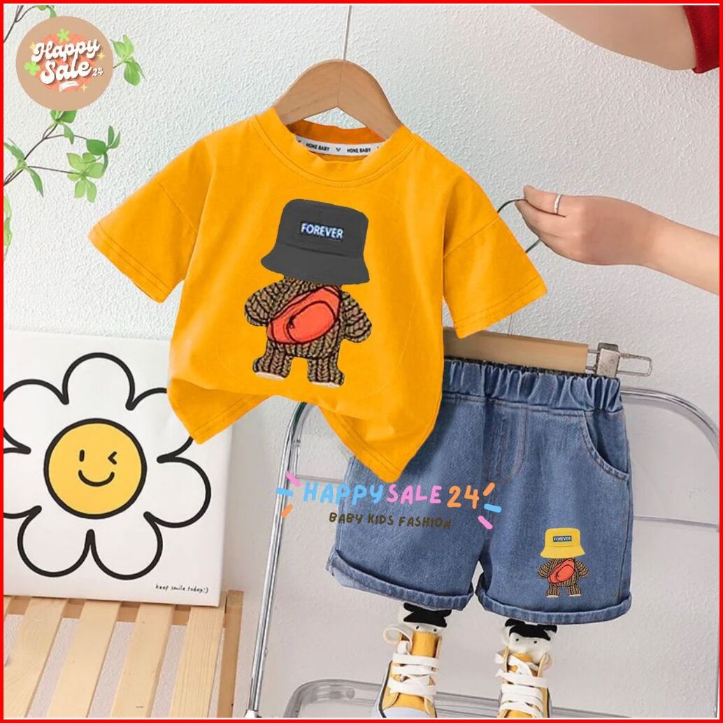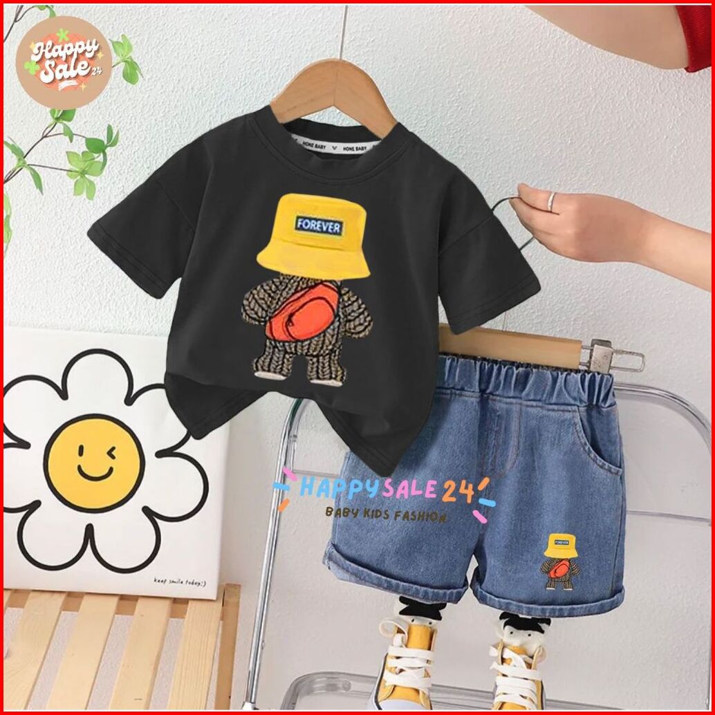 Setelan Anak Baju Kaos Celana Pendek Bahan Denim Umur 1-5 Tahun Motif Bear Foreeverr Setelan Anak Laki Laki Perempuan Te