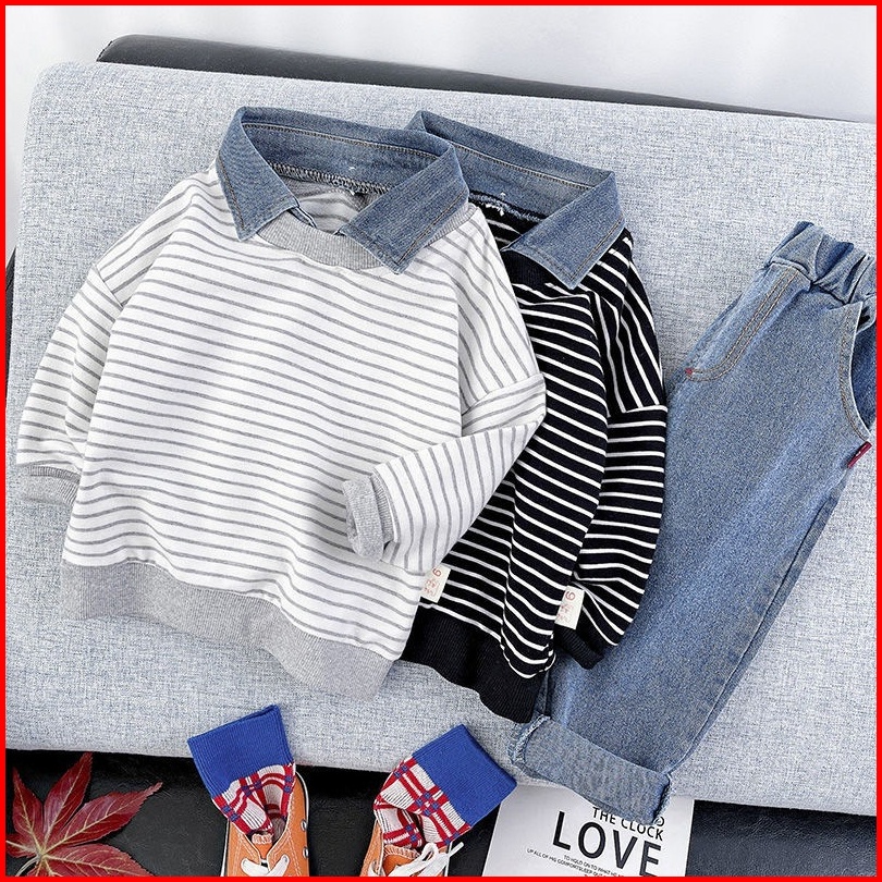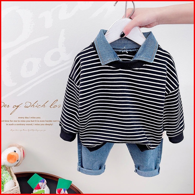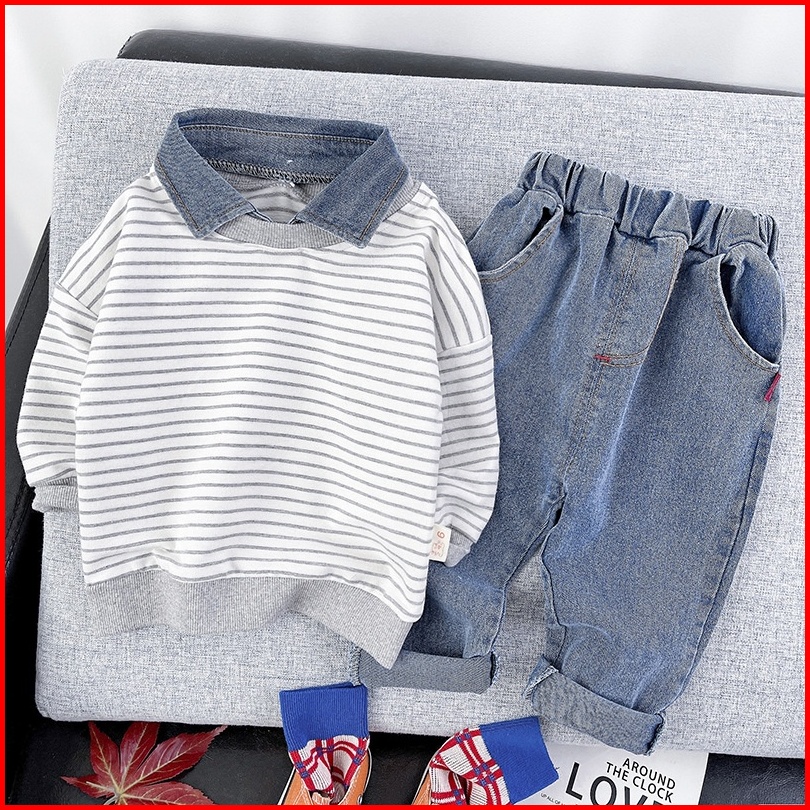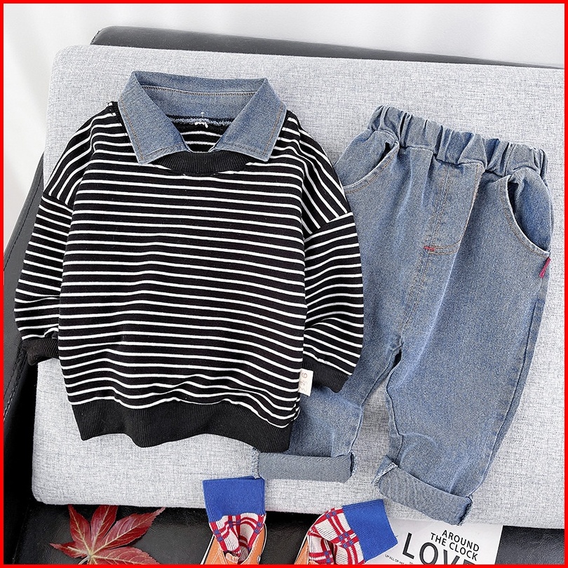 Promo 6.6 Heybaby Set Kra Jeans Edward Ebv Setelan 2in1 Kemeja Bayi Anak Laki-laki Im Lengan Panjang Berkualitas