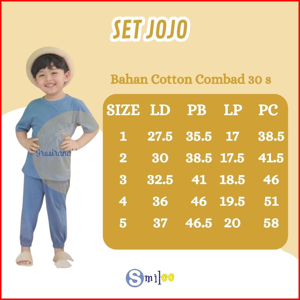 Setelan Anak Unisex Smilee Jojo Mix Warna Size 1-5tahun