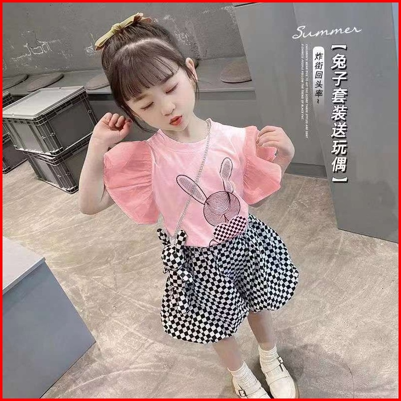 Baju Setelan Anak Perempuan 1-5th Free Tas Boneka