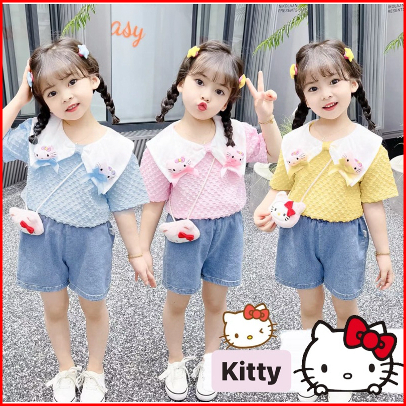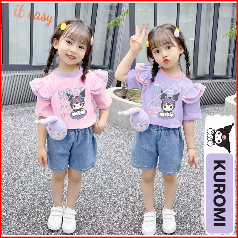 Setelan Celana Pendek Premium Anak Perempuan Usia 1 - 4 Tahun Motif Kuromi Kitty Kuromi Love Shellie May Lina Bell Rabbi