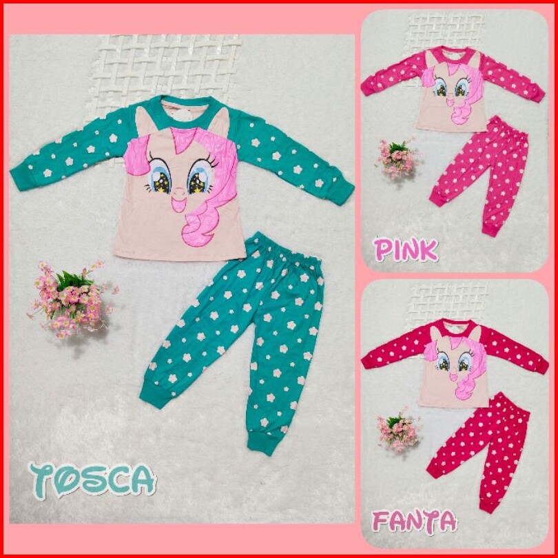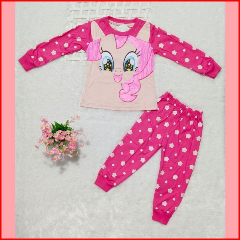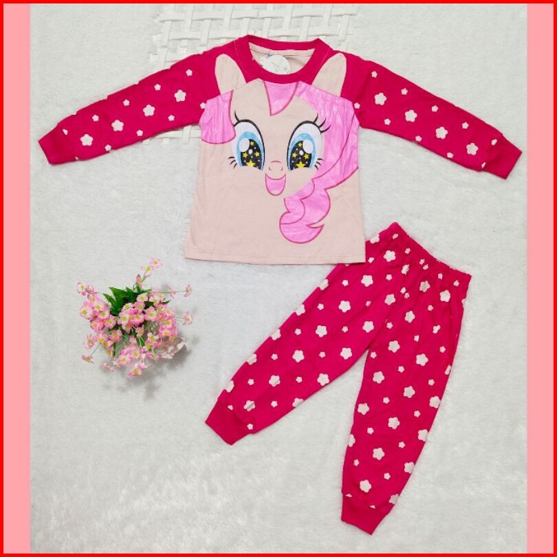 Setelan Anak Perempuan Usia 1-10 Tahun Gambar Kuda Pony Unicorn Baju Tidur Cewek 2 3 4 5 6 7 8 9
