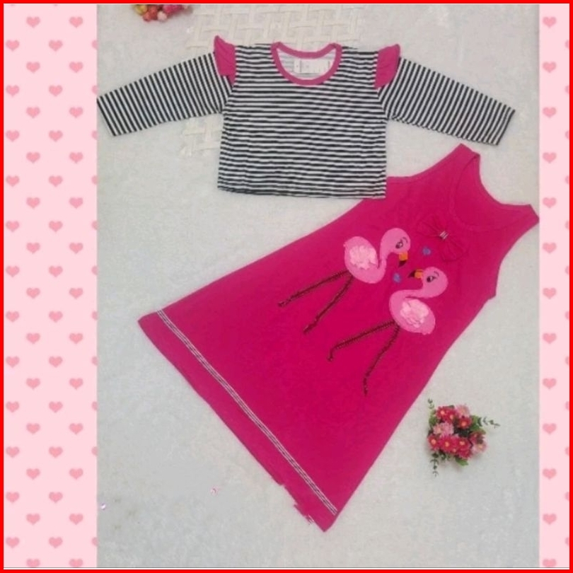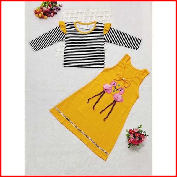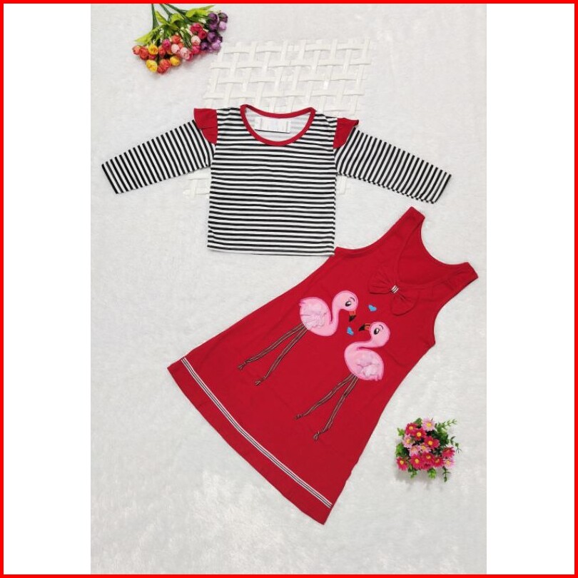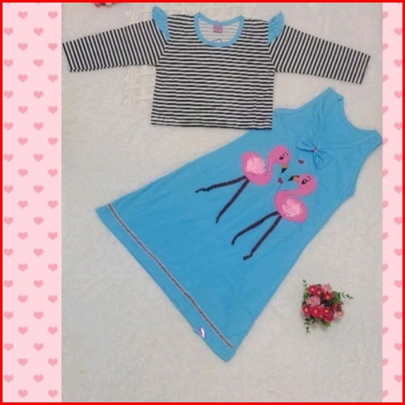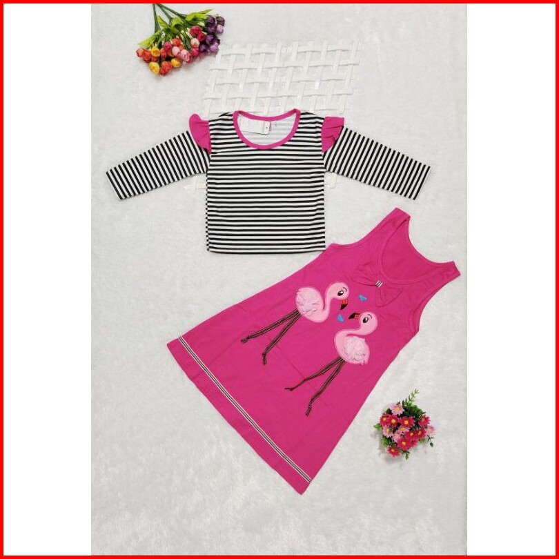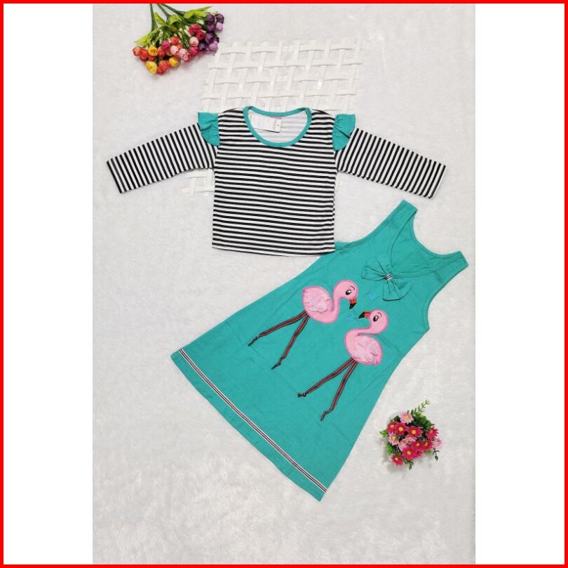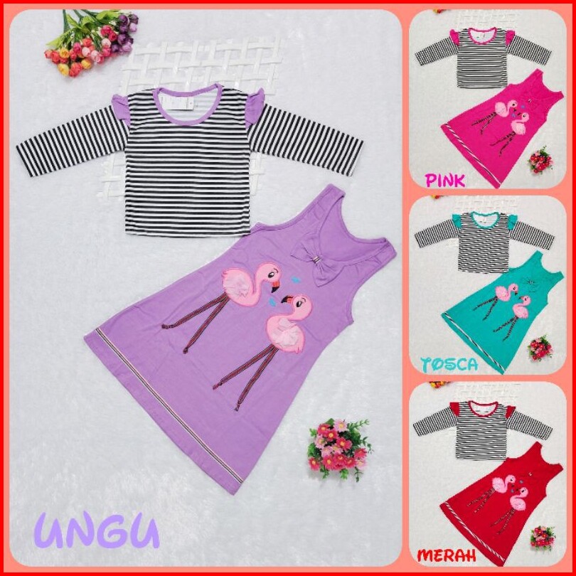 Dress Overall Gamis Anak Perempuan Usia 1-8 Tahun Bordir Flamingo Baju Dress Panjang Anak Cewek