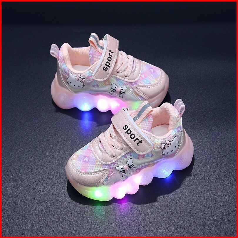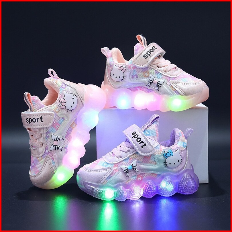Cuci Gudang Sale 6.6 Littleaaron Kitty Sepatu Sneakers Anak Laki Perempuan Led Menyala Sandal Anak Import Lucu Sekolah