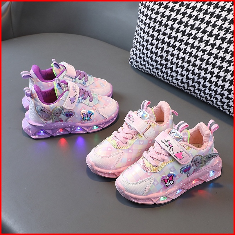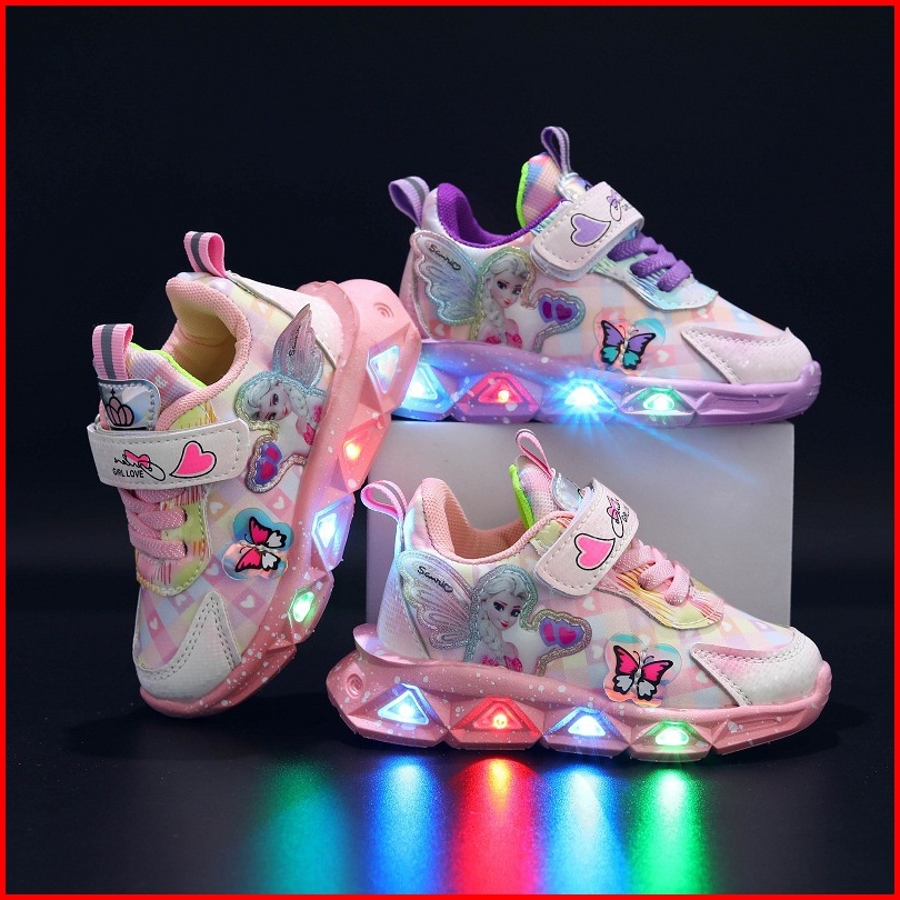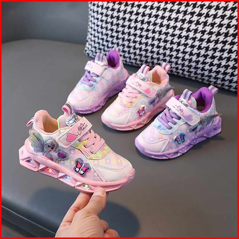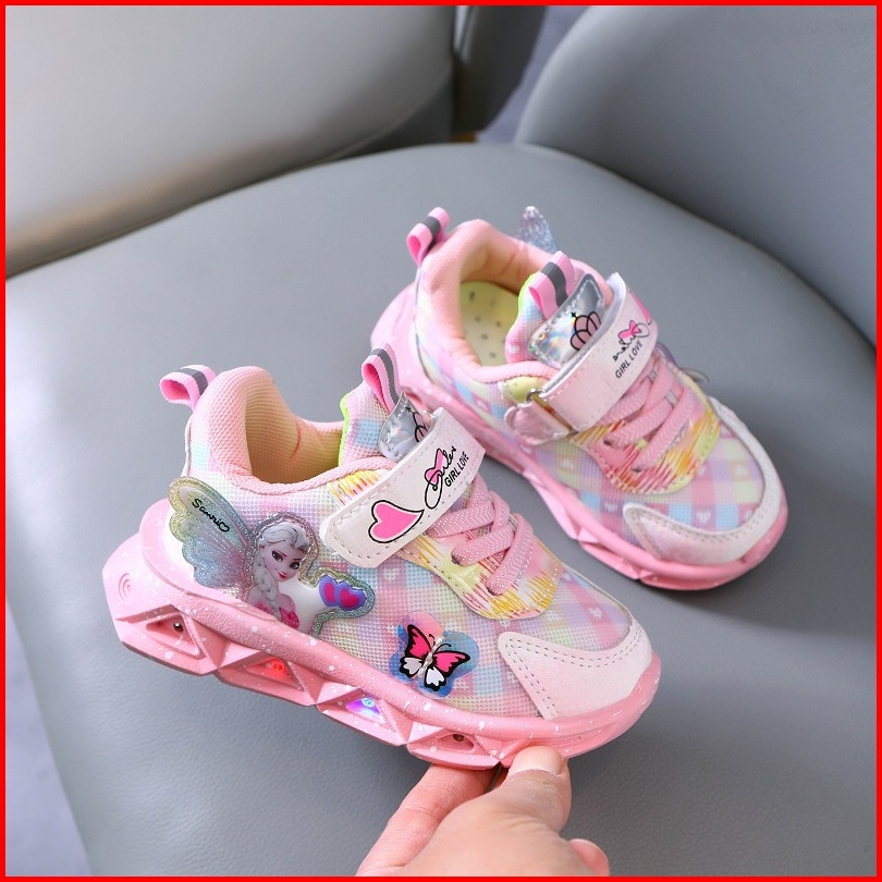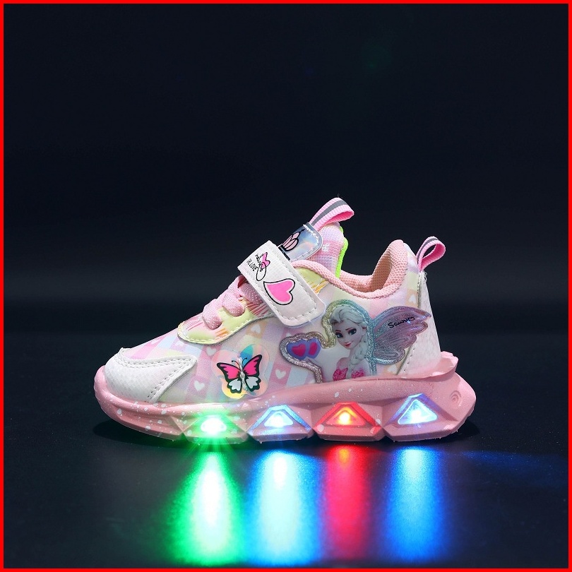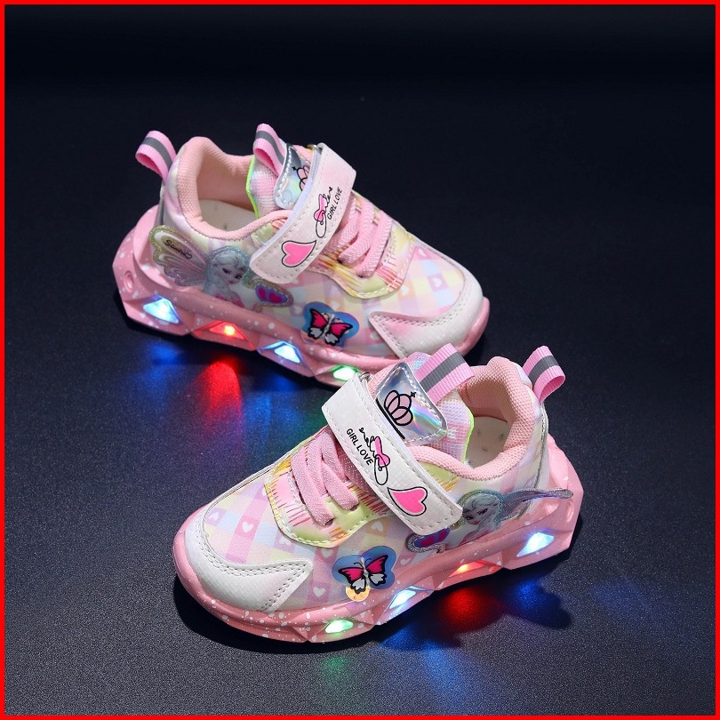 Promo 9.9 Heybaby Frozen Butterfly Sepatu Sneakers Anak Laki Perempuan Led Menyala Im Sekolah