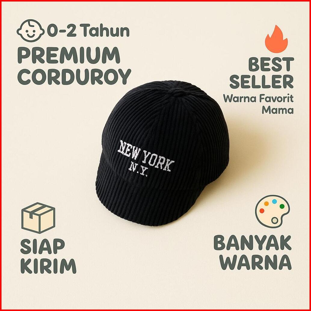 Topi Bayi Cowok Lucu Newyork Corduroy Premium 02 Tahun Topi Korea Stylish Bayi