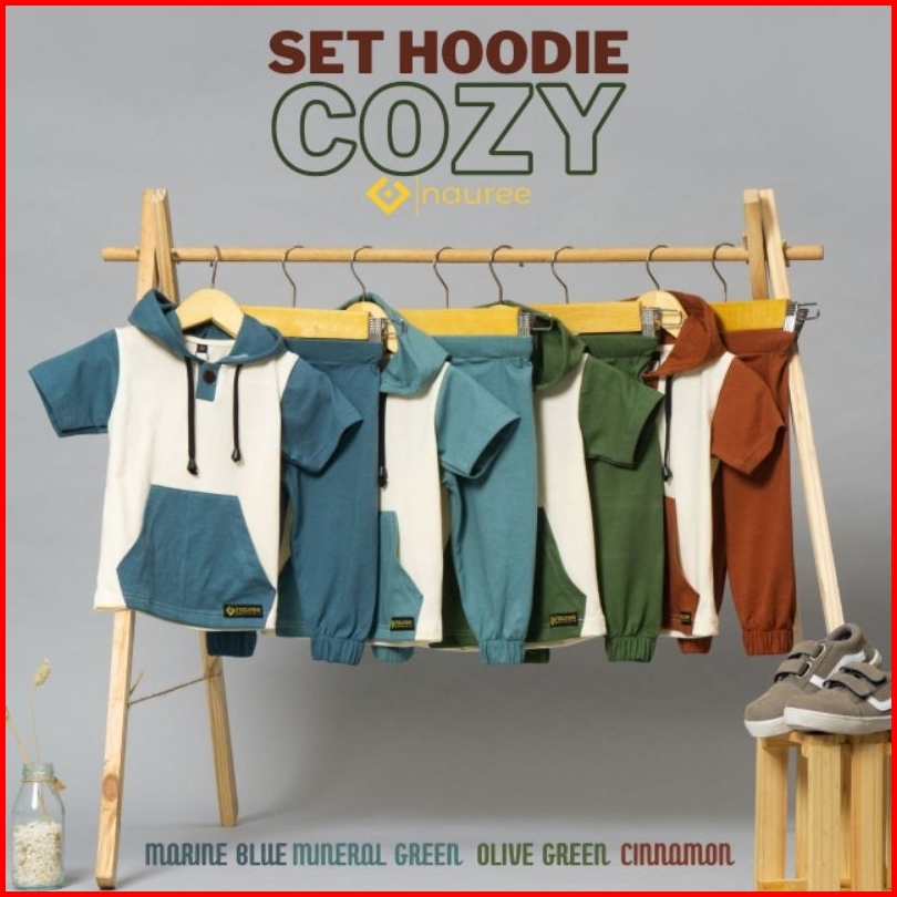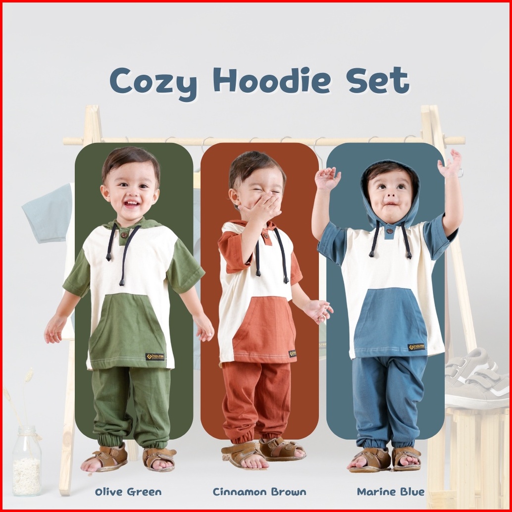Nauree-setelan Hoodie Cozy Baju Anak Laki Laki Umur 1 - 6 Tahun Bahan Import Korea Set Kaos Celana 3in1 Sweater Jogger